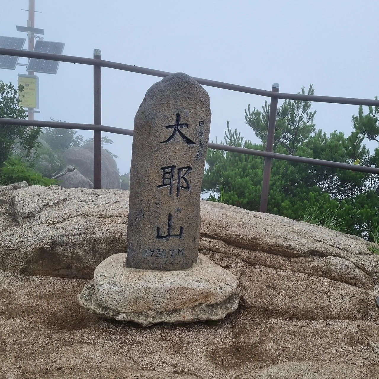 이정표가 보인다. 대야산 정상이 300m라고 표시되어 있다. 어떤 분이 올라오면서 이제 700m쯤 남았다고 한다. 이정표가 비정상이다. 이곳에서 올라온 길을 돌아보는데 활승안개가 이제는 올라온 길을 환상의 길로 만들어 버린다. 정상은 안갯속에 신선의 세계로 만들어 버리고 숨겨 둔다. 데크를 힘겹게 오르는 사람을 한 발 한 발 걸으면서 앞서 가본다. 정상을 바로 앞에 두고 내려오는 사람이 우리를 기다린다. 정상을 오를 때 두 번이나 일방통행 할 수 있는 길이 있다. 그곳을 지나면 정상이다. 바위 위에 정상석이 자리 잡고 있다. 아무것도 보이지 않는다. 다만 정상석은 활승안개가 장악하고 있지 않아 우르르 서서 정상석을 담는다. 바로 이웃한 봉으로 사람들이 이동하여 배를 채우고 있다. 어떤 부부는 물회를 가지고 올라왔다. 커다란 그릇에 회도 담도 야채도 담고 얼음도 담고 야채도 담고 부인이 비벼서 남편과 같이 나누어 먹고 있다. 내 짝궁은 올라올 수는 있는데 버스를 타지 못하여서 오지 못하는 것에 아쉬움이 있다.