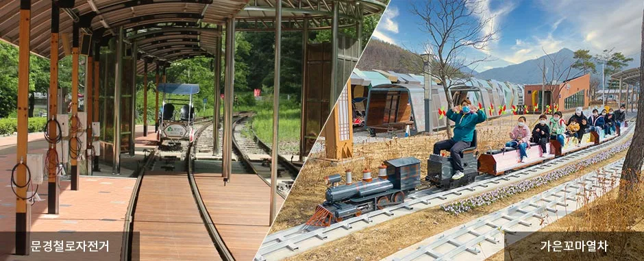 "20여 년 전 석탄을 실어 나르던 철로가 이젠 관광 자원으로 변모 하여 전국 최초로 철로 위를 달리는' 문경 철로 자전거' 로 태어났다고" 홍보를 하고 있다.