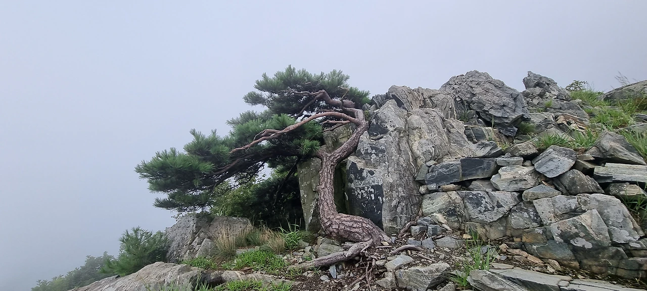 소나무가 바위 위에 자라면서 그 정취를 내고 있는 것도 있다. 정암사를 내려가는 길게 나 있는 계단에 이르기 전까지 소나무는 지속적으로 운치를 내고 있다. 전망대가 있지만 아무것도 보이지 않는다. 가을날 억새가 사람들을 불러 모을 때 다시 와야 될 것 같다. 정암사를 가는 길과 아차산을 가는 길이 나뉘어지는 갈림길에서 왼쪽으로 내려간다. 등산로 처음은 흐릿하다. 하지만, 왼쪽으로 내려갈 수 있도록 표시를 해놓았다. 나무들이 참 자라고 있다. 하지만, 나무 밑동을 보니 이곳도 산불이 난 흔적이 있다. 2022년 봄에 산불이 나서 잘 자란 소나무 밑 등에 피해를 준 흔적이 있다.