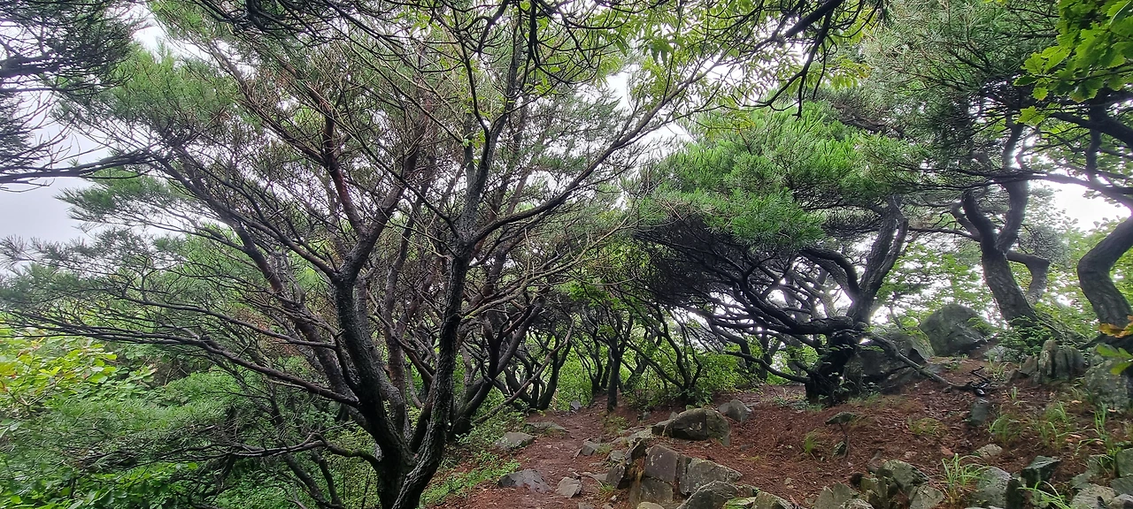 전망대에서 이제는 하산을 한다. 특이하게 반송이 많다. 반송이 군락을 이루고 있는 곳이다. 반송을 정원들에서 많이 보았지만 산행 중에 본 기억이 없는데 오서산에는 반송이 군락을 이루고 있다.