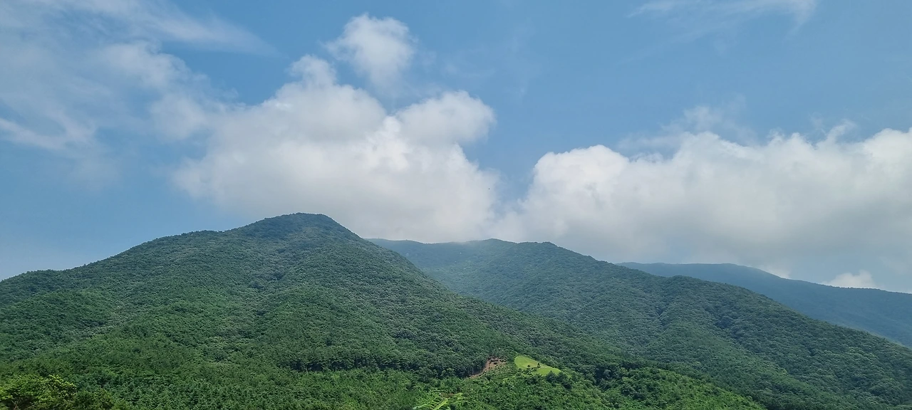 대전 근처에서 오서산까지는 고속도로로 접근을 하기보다는 국도로 접근을 한다고 보아야 할 것이다. 서울에서 내려오면 고속도로로 접근을 하지만 우리는 대전 근처에서 출발을 하여 달린다. 햇빛이 강하다. 국도를 달리다 보니 목적지 근처에 있는 지방도로로 접근을 하는데 덤프트럭이 뒤에 있다. 그렇게 멀리 있지도 않은데 무섭다. 앞에도 덤프트럭이 있다. 뒤에 자동차가 추월을 시도한다. 추월을 허용한다. 앞차와 그렇게 속도 차이도 나지 않는데 성질이 급한 사람을 그냥 보내드린다. 이제 오서산이 보인다. 오서산 정상은 구름으로 숨겨져 있다. 서해안 지역에 가장 높은 산인 오서산인 만큼 오늘 같이 더운 날 정상에서 햇빛을 직접 보지 않고 지나갈 수 있을 것 같다. 오서산은 우리나라 5대 억새 군락지 중에 하나이기 때문에 정상에서 나무가 없을 것이기 기대를 해본다.