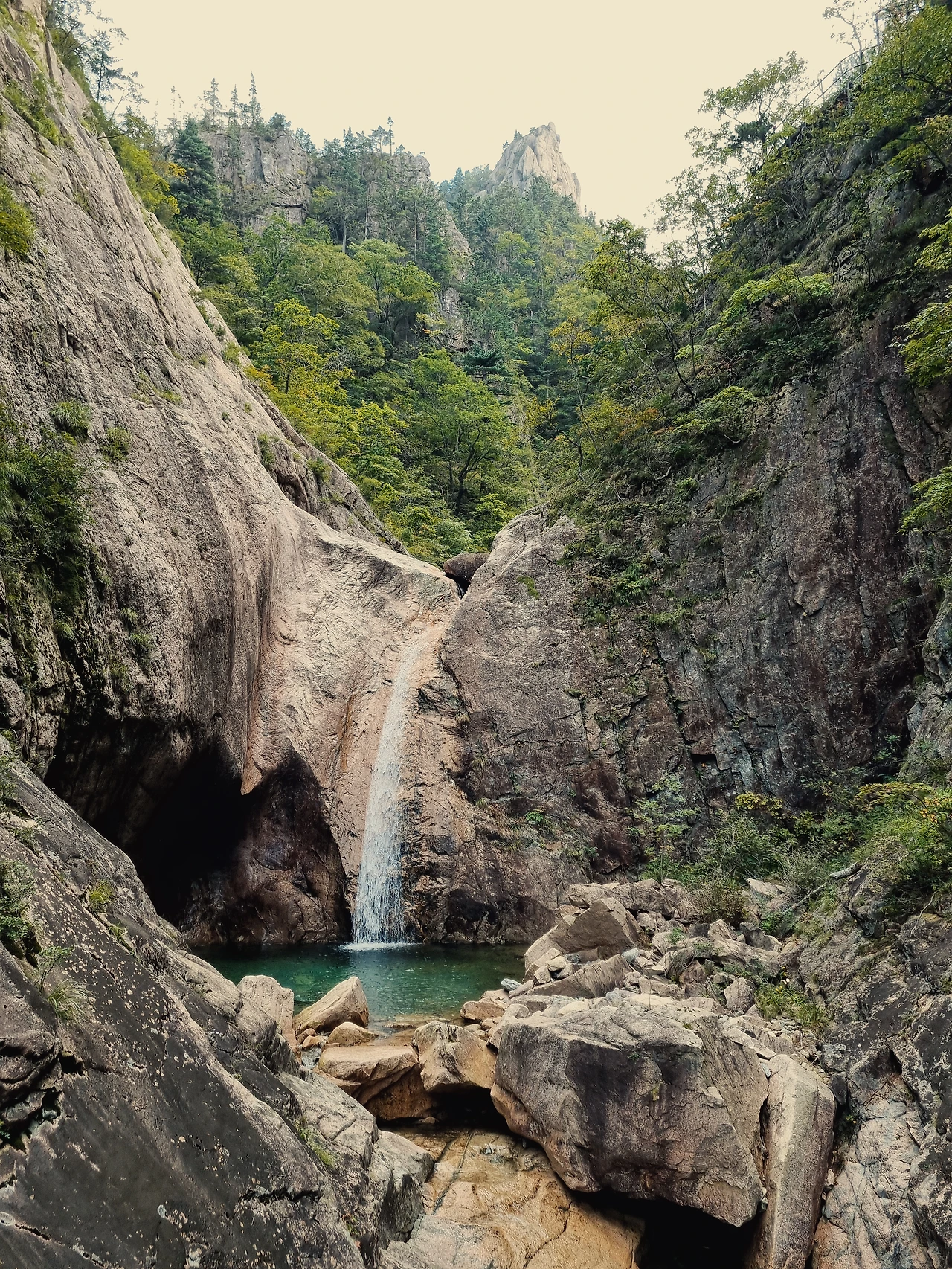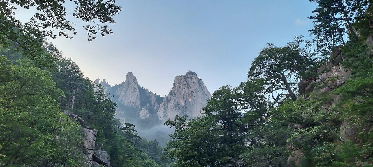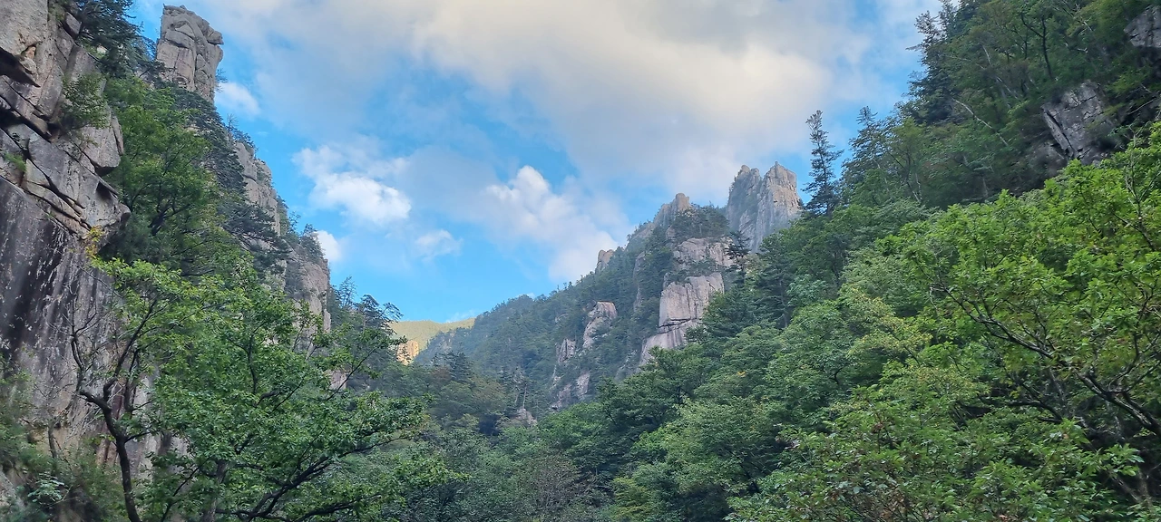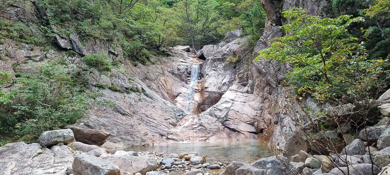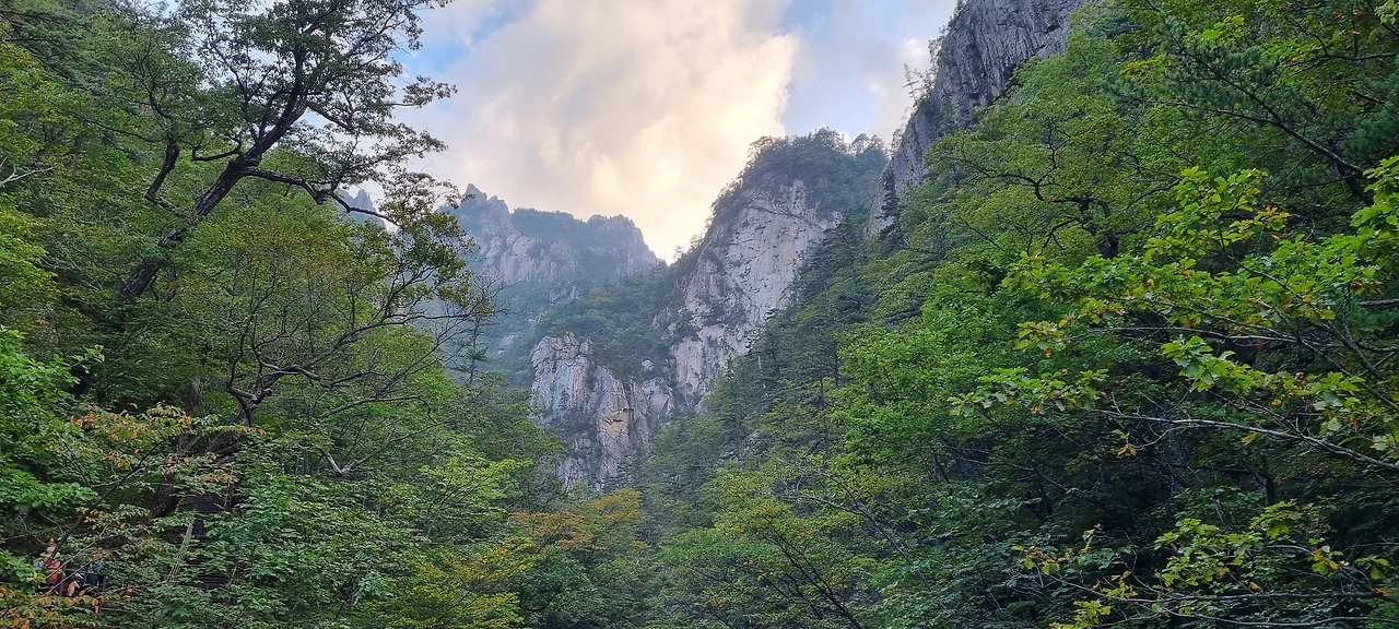 계곡을 거슬러 내려오면서 측면으로 세워져 있는 병풍 같은 봉우리를 쳐다보면서 감탄을 하지 않을 수 없고 그 사이에 난 계곡에 흐르는 맑은 물을 그냥 지날 수 없어 한 번씩 얼굴도 씻어보고 발도 담가보고 내려온다. 바위 사이에 난 계곡 그리고 폭포는 그냥 아름다움의 극치라고 보아야 할 것이다. 깎아지른 절벽 위로 누가 올라갈 수 없어 자연을 그대로 볼 수 있다. 그것이 외설악의 아름다움이라고 해야 될 것 같다.
