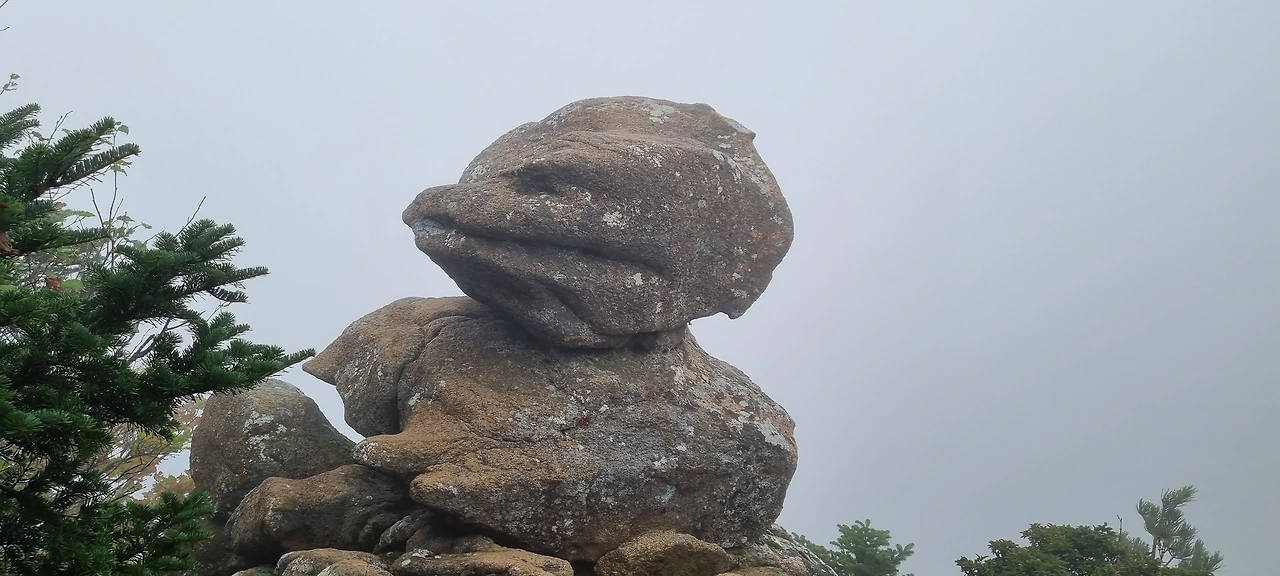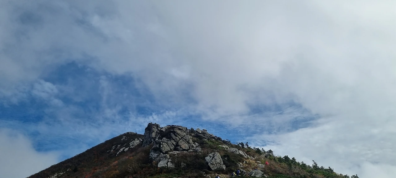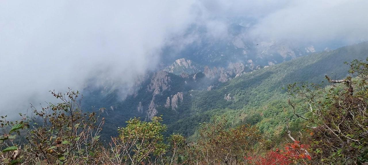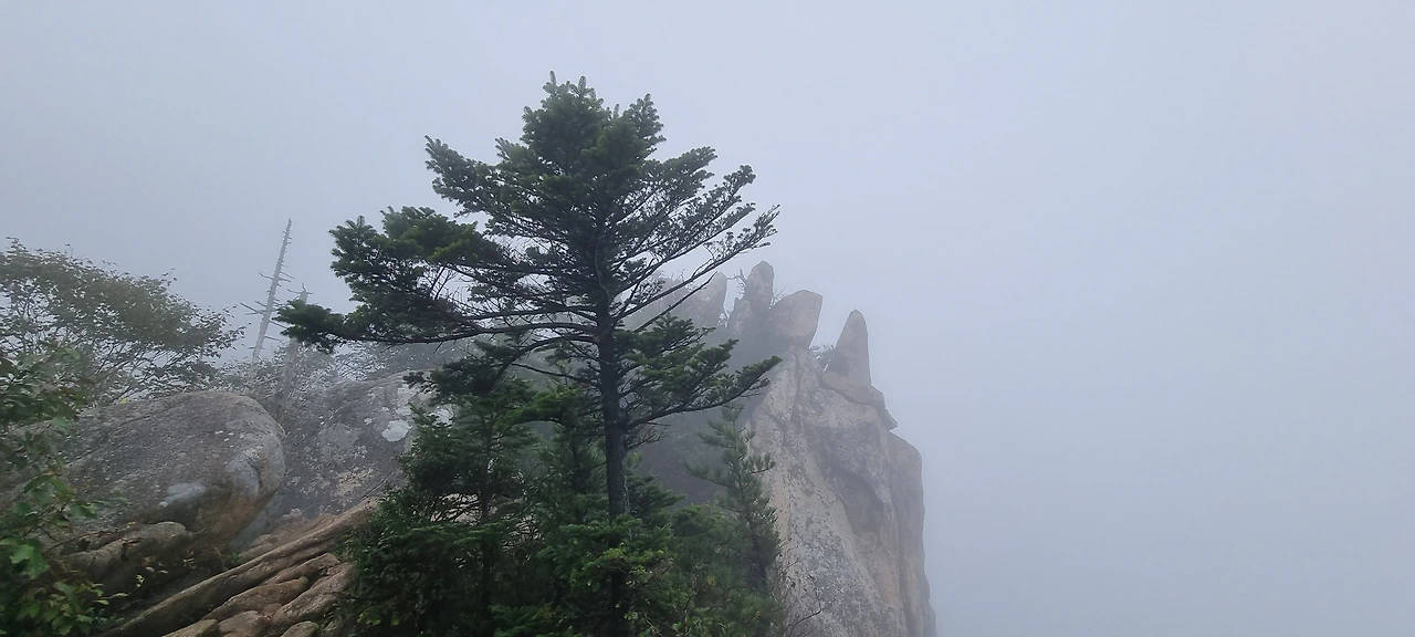 버스는 한계령 휴게소에서 절반의 등산객을 내려주고 오색으로 내려간다. 우리는 오색령이라고 붙여진 이정표를 보면서 새벽에 출발하면서 부족하였던 공복을 달래고 산을 오를 준비를 한다. 고갯마루에서 아래를 내려다 보아도 구름은 여전하고 바로 이웃한 봉우리도 구름과 함께하고 있다. 한계령 하면 노래가 생각이 난다. 그런 노래가 있기에 한계령이 더 유명해진 것일 수도 있다. 한계령에서 한계령 삼거리까지가 오늘 가장 힘든 구간이다. 2km 정도를 걸으면 그다음부터는 능선을 따라 걷는다.
