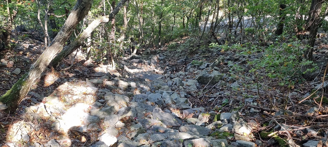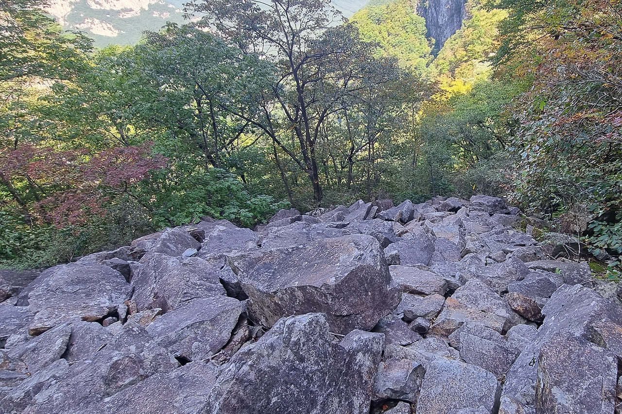 오르면서 동굴도 구경하고 그렇게 올랐다. 그 동굴이 동의굴이라고 한다. 동의굴은 소설 동의보감에 나온 동굴로 스승을 해부한 곳이라고 한다. 스토리텔링을 한 것인데 너무 허접하다. 좀더 스토리텔링을 할 필요가 있다고 본다. 동의굴에서 다시 오른다. 뒤를 돌아보니 백호라고 한다. 위아래로 내려다보니 너덜바위 지대다. 그리고 등산로는 잘 정비되어 있다. 친구는 이곳을 따라 하산을 하였다고 한다. 하산을 하는 것이 좋은 것인 등산을 하는 것이 좋은 것인지 모르겠다. 나는 등산을 하는 것이 좋다고 본다.