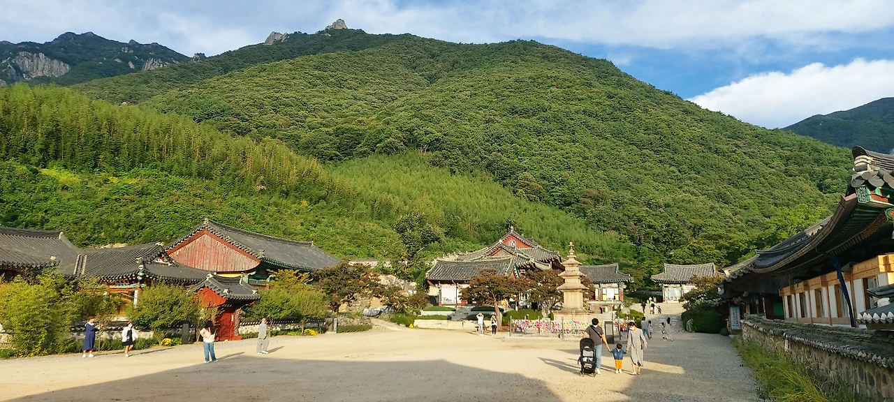 표충사를 바로 앞에 두고 천황산과 재약산을 거친 땀을 씻어 낸다. 냇가에 땅콩이 흩어져 있는 것으로 착각을 했는데 도토리가 흩어져 있다. 도토리를 줍는 사람도 있지만 우리는 아무 생각이 없다. 표충사를 들려서 표충사를 감싸고 있는 재약산의 모습을 본다. 그리고 천황산도 본다.