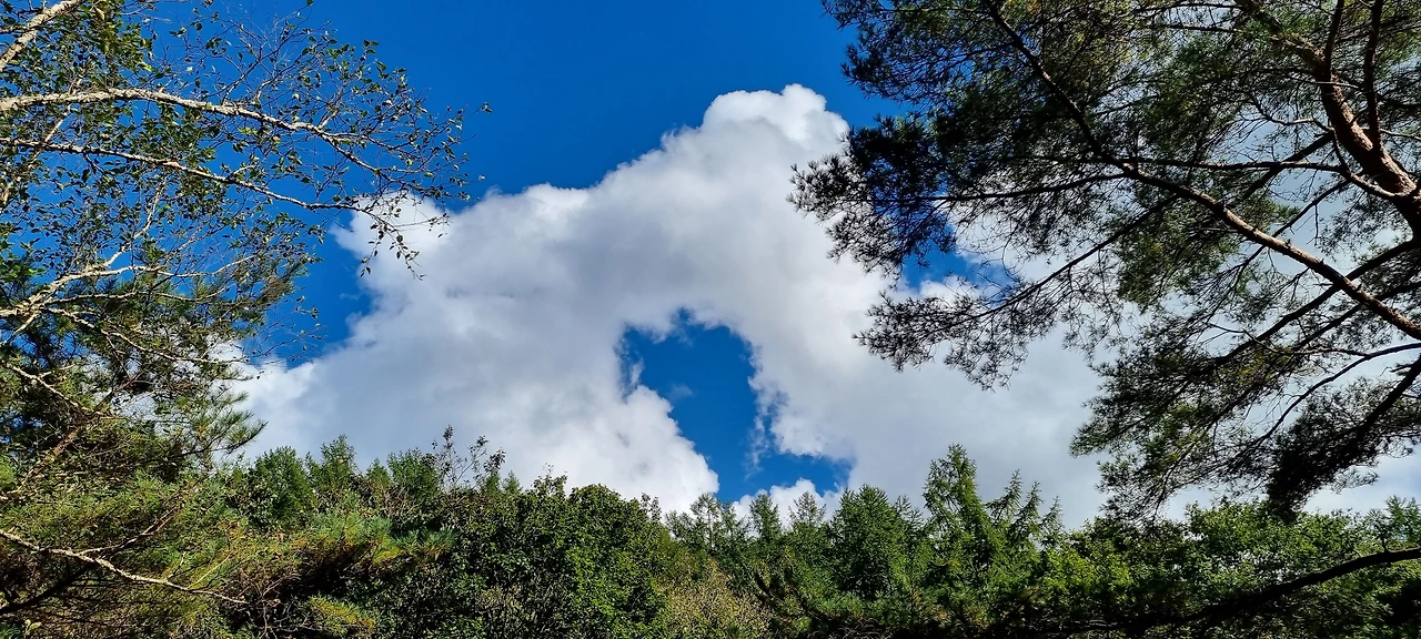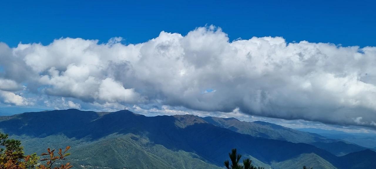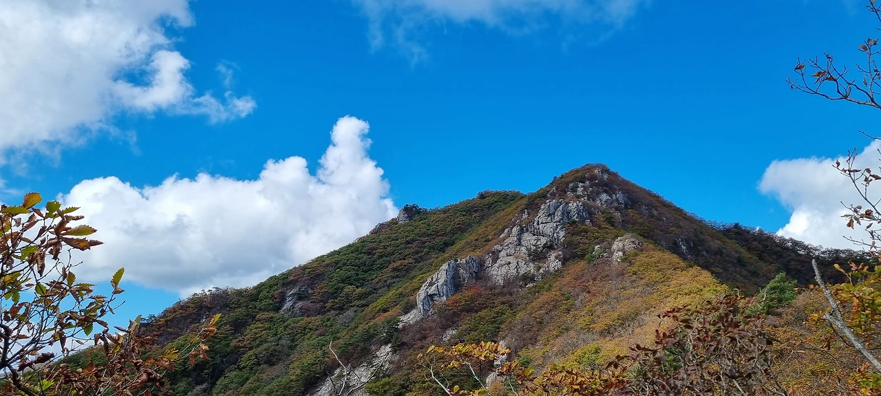 이제 버스를 타고 단양역으로 가면 된다. 단양역으로 가는 버스가 5시간 넘어서 있는 것으로 알고 어떻게 갈 것인가 하고 고민을 하면서 동네 어르신에게 물어보니 30분 정도 걸어가면 4시쯤 버스가 있다고 한다. 30분이면 우리는 문제가 없다. 몇 시간을 산행을 하였는데 아스팔트 길 30분은 너무나 쉬운 길이다. 옛날 분교터 앞에 버스 정류장이 있는데 버스가 1시간에 1대 정도 있어 너무 좋았다. 산을 내려오면서 하늘을 본다. 가을날 청명한 하늘이 우리를 안녕이라고 한다. 하늘이 너무나 많고 깨끗하다. 구름도 모양이 너무 좋다. 양이라고 하여야 하나, 아니면 한반도를 거꾸로 세워 놓았나 모르겠다. 그렇지만 구름의 모양이 너무 좋아 담아 보았다.