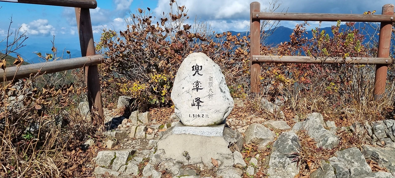 버스는 죽령까지 굽이굽이 올라간다. 예전에 고속도로가 열리기 전 겨울에 이곳을 넘어갈 때 1시간이나 걸렸다. 옛날에는 시외버스도 힘들게 올랐는데 지금은 시내버스도 쉽게 올라가는 것 보니 버스의 성능이 좋아졌다고 본다. 죽령에 도착하여 같이 버스를 타고 온 사람은 연하봉 쪽으로 방향을 잡고 가고 우리는 도솔봉으로 간다. 도솔봉으로 가기 위하여서는 도경계를 넘어서 경상북도 쪽에서 시작하는 등산로로 들어선다. 죽령 위에 있는 영남의 관문이라는 성루를 보고 등산로에 들어선다. 등산로는 너무 좋다. 처음 걷는 길인데 처음부터 봉우리를 올라가는 것이 아니고 봉우리를 우회하기에 너무 쉽게 다음의 봉우리로 올라가는 등산로로 접어든다고 보아야 할 것이다. 도솔봉에서 묘적봉에 이르는 구간은 여름이면 사전 예약을 하여야 한다. 10월부터는 문제없이 산행을 할 수 있고 11월부터는 산불조심기간이라 입산통제가 된다.