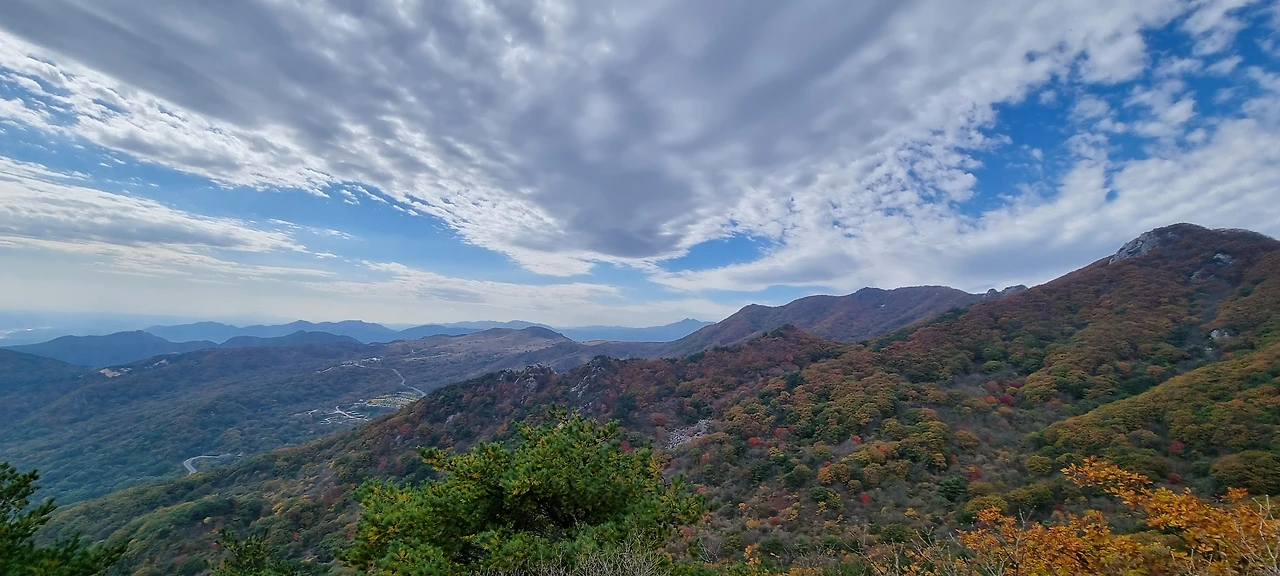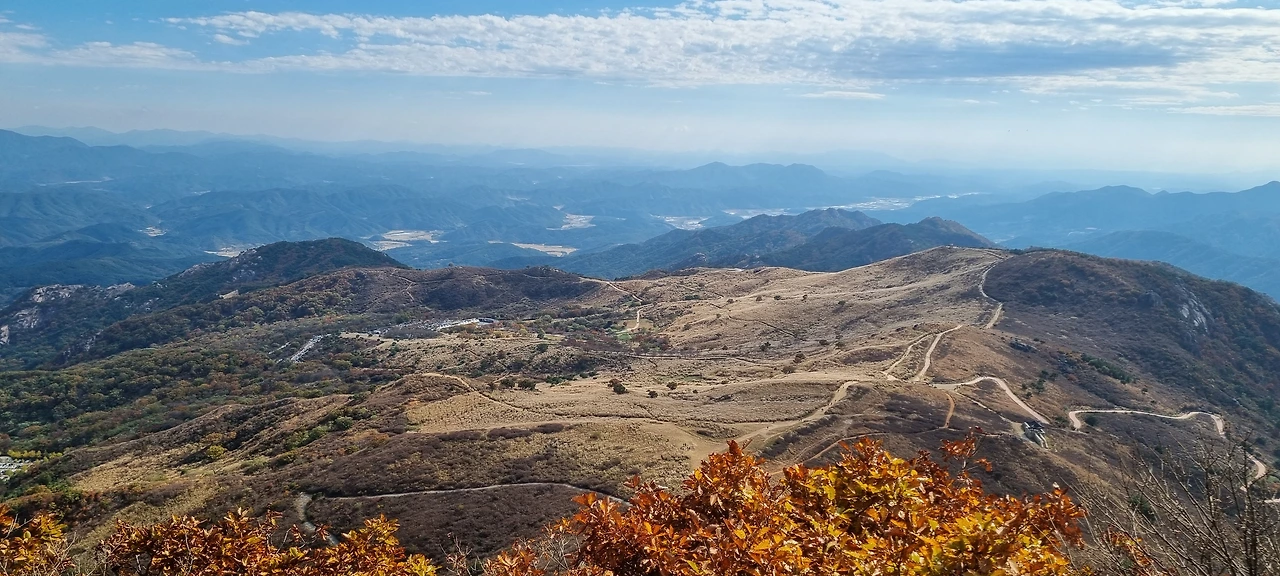 원점회귀를 하였다. 다시 자동차를 타고 굽이굽이 돌아서 오송역으로 가야 한다. 아침에 구간단속구간이 반대편이 어떻게 될지 궁금하다. 그 길을 역방향으로 올라가는 것이다. 지나가면서 우리가 걸은 능선을 보면서 추억에 잠긴다. 그리고 반대방향은 구간단속이 없다. 내려오는 자동차는 브레이크 등이 상시 켜져 있다. 올라가는 자동차는 60km을 넘어서서 올라가고 있다. 느리게 가면 뒤에서 눈총을 준다.