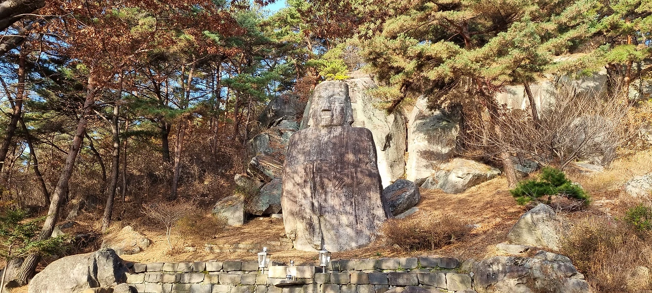 처음에 만나는 곳이 미륵불이 있다. 자연석에 미륵불을 조각을 하여 둔 곳이다. 미륵불만 있고 가람은 없다. 사람들이 없어서 그런지 가람을 지을 돈이 부족해서 그런지 모르겠다. 조계종의 어느 사찰이라고 하면 벌써 가람이 완비되어 있겠지만 그렇지 못하다. 용봉산의 미륵불이나 마애석불은 자연석에 조각한 것이 특징이라면 특징이라고 보아야 할 것이다. 누군가가 이른 아침부터 주변을 깨끗이 정리해 두어서 그런지 버려진 사찰터는 아니다.