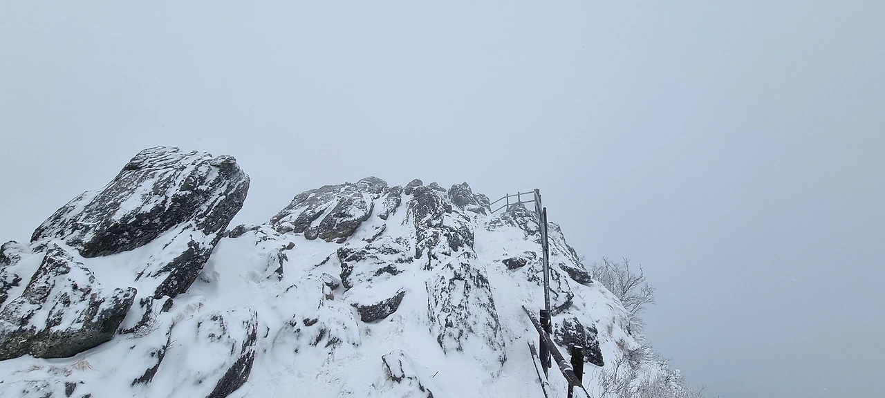 그것이 현실이다. 설천봉 정상에서 이제 향적봉으로 발을 옮긴다. 눈이 오고 있어 겨울장비를 챙긴다. 다만, 아이젠만 챙기면 된다. 눈이 많이 왔지만 별도로 눈밭에 들어가지 않기에 다른 장비는 배낭에 두고 움직인다. 산을 오른다. 600m만 오르면 되는데 두줄로 움직인다. 한 줄은 오르고 한 줄은 내려온다. 오르면서 멋있는 경치가 보이면 사진을 담기에 오르는 길이 정체된다. 그 정체된 길이 자연스럽다. 나도 한 번쯤 거기에 동참해 본다. 눈꽃이 피어 있다. 가지마다 눈이 맺혀 있어서 그 가지에서 꽃이 피는 것이다.