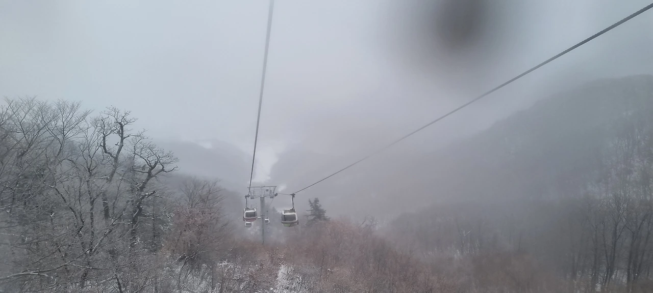 곤돌라 탑승장에서 기다림은 짧다. 하산을 위한 탑승장에서 기다림은 1시간 이상 소요되었다. 곤돌라에 8인승인데 가족이 같이 타고 있는데 나는 혼자다. 곤돌라 밖을 쳐다보아도 아무것도 보이지 않는다고 하소연하고 있다. 10분 이상 곤돌라를 탑승하고 오른다. 산을 오르면서 이렇게 쉽게 오른 기억은 거의 없다. 하지만, 오늘은 추억이다. 곤돌라에 내리니 바람이 분다.