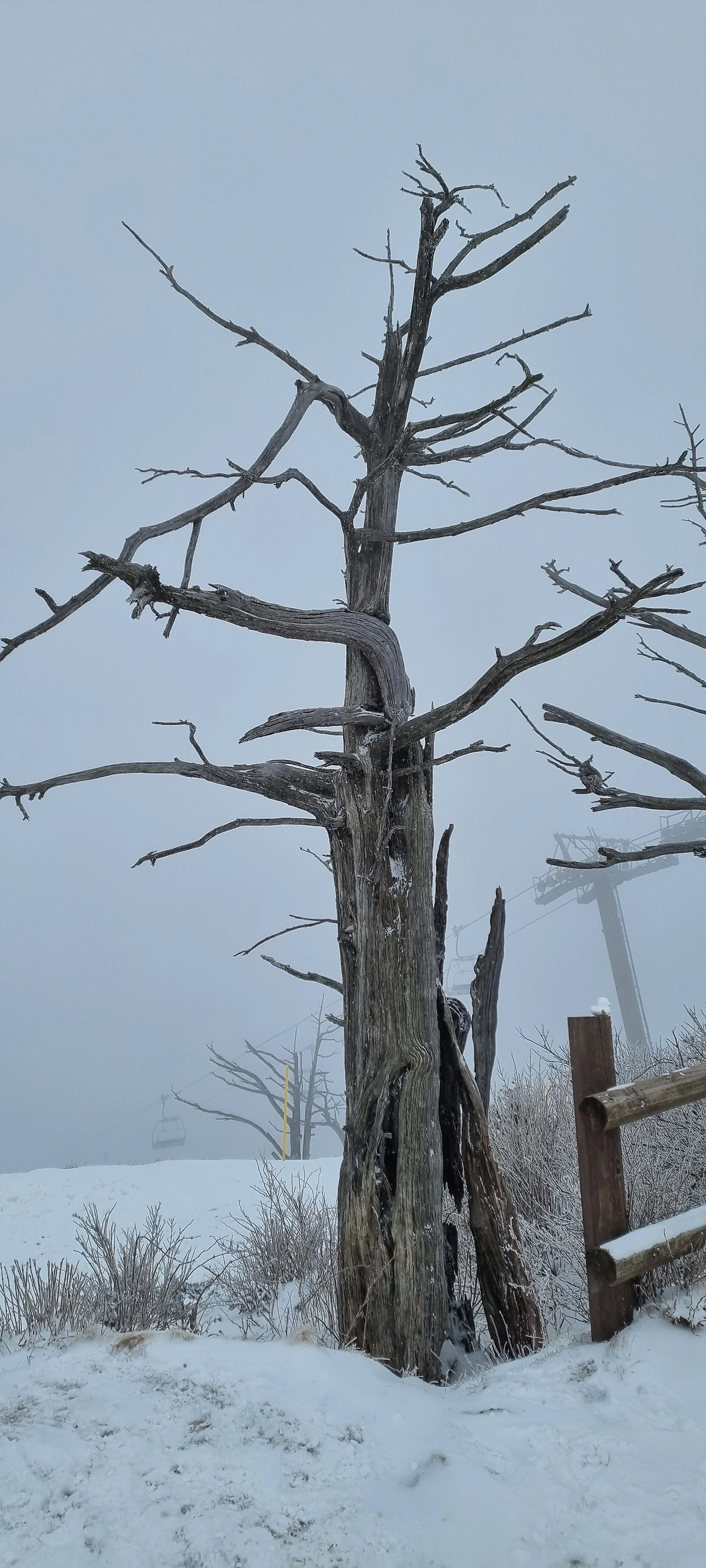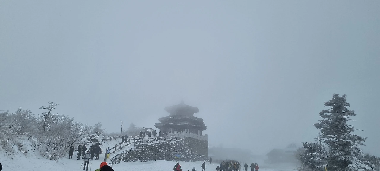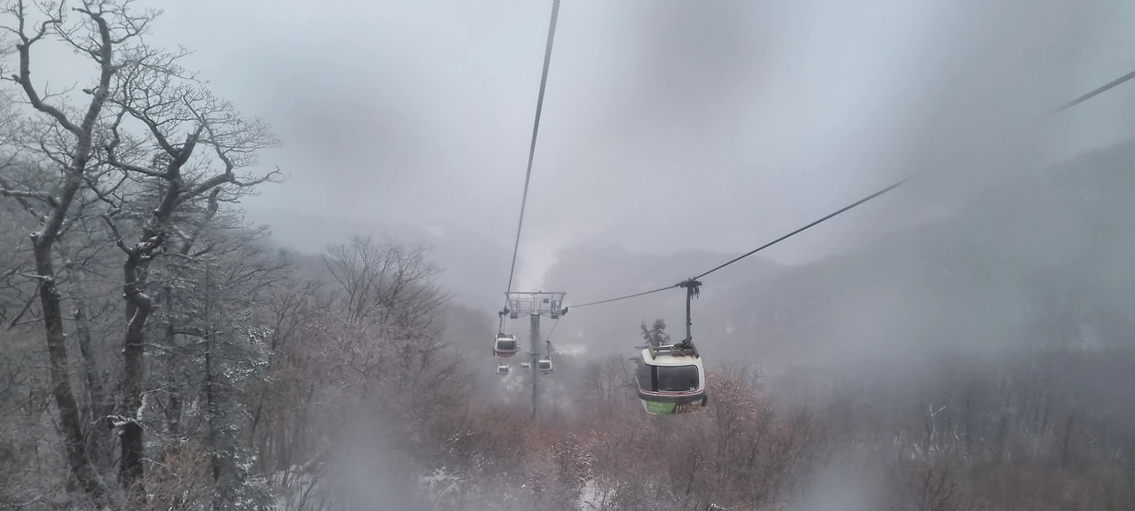 대피소 주변에 있는 나무들이 눈을 가지 위에 올리고 머리를 치켜들고 있다. 그 흰머리가 아름다워 너도나도 사진을 담는 것이다. 향적봉에서 2시간을 보내고 하산을 하는데 곤돌라를 탑승하는데 1시간을 소요하였다. 설천봉 주변에 바람이 흩날리고 있다. 곤돌라가 대롱대롱 매달려서 달리고 있다. 이것이 겨울의 풍경이다....