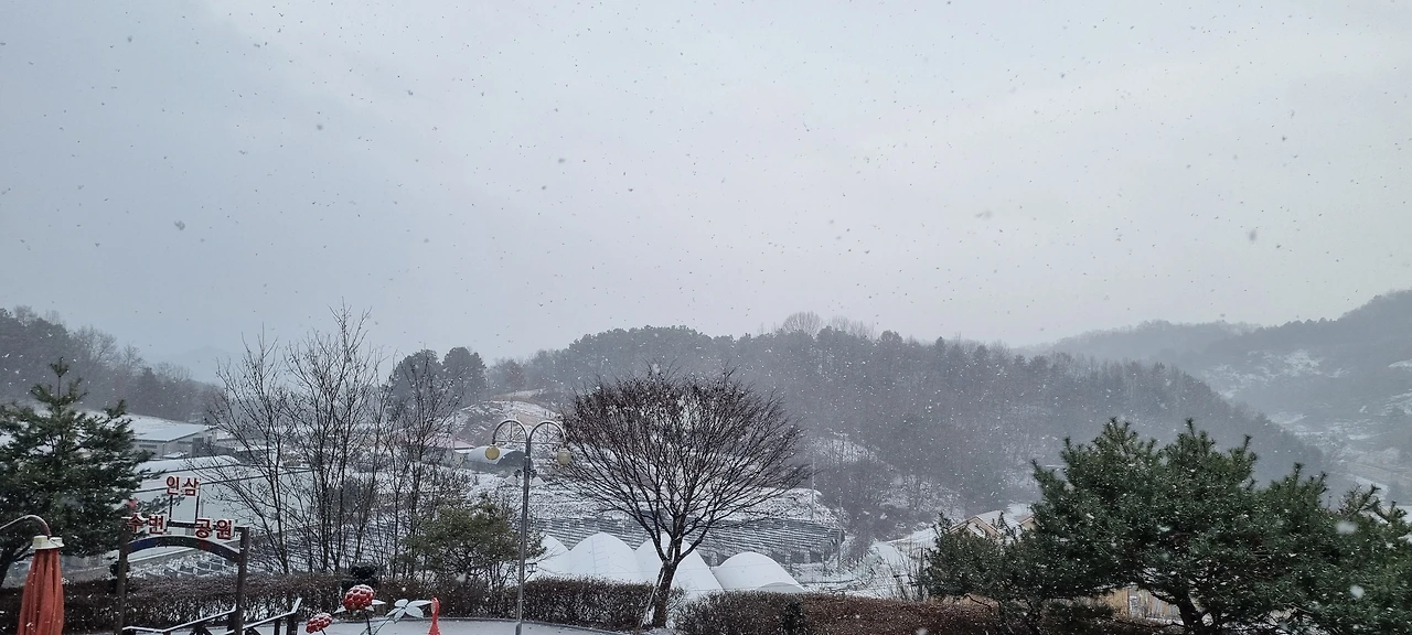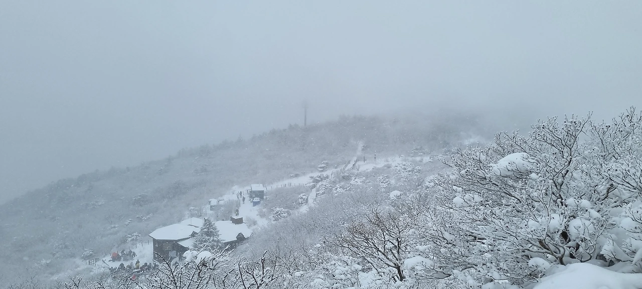 '히말라야'라는 영화를 보면 눈을 보고 내려오다가 실명을 한다. 그것은 흰 눈을 고글 등의 장비 없이 바라다보았을 때 나타나는 현상이라고 한다. 오늘은 그러한 걱정도 없이 눈이 오는 덕유산으로 그냥 달려간다. 일기예보에서 덕유산은 오후에 눈이 온다고 하였으니 전날까지 눈을 그냥 보려고 달려간 것이다. 일기예보에서 가장 어려운 것이 눈 예보라는 사실을 간과하였다. 하지만, 서울에서 출발하면서부터 눈발이 날리고 있다. 남쪽으로 내려가면 눈일 그치고 오후에 눈이 올 것이라는 기대감을 갖고서 버스를 타고 내려간다.