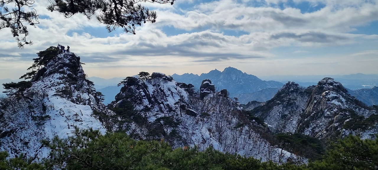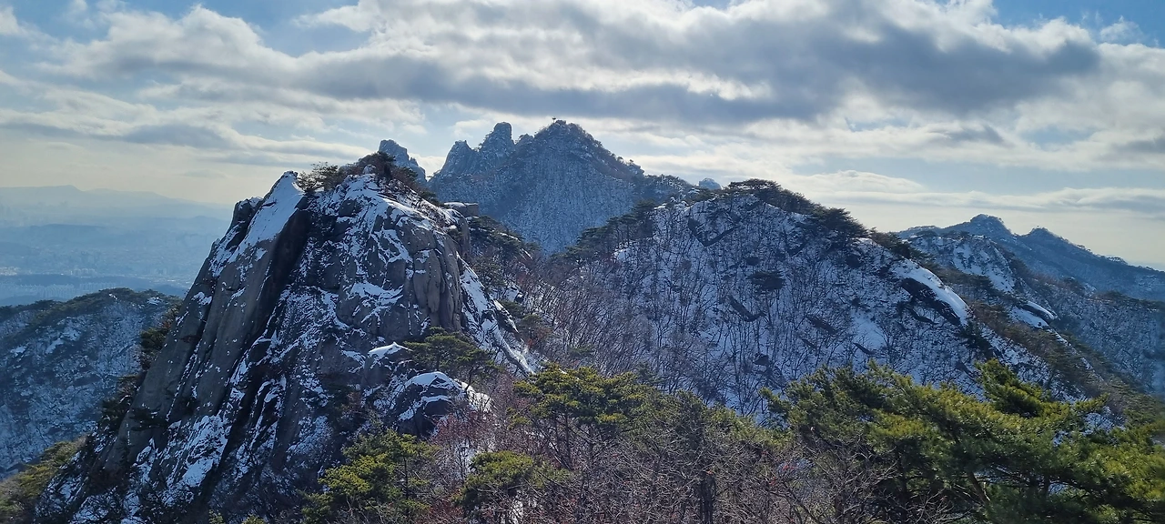 오봉능선을 걸으면서 삼거리까지 아무 일 없었는 것처럼 걷는다. 삼거리를 가기 바로 전의 오봉능선이 끝나는 지점에서 봉우리를 오르는데 두 손을 다 사용하여야 한다. 오르막을 오르는 곳에 얼음이 가득하다. 얼음을 피하여 오르는데 친구 H는 그것을 회피하지 않고 오르면서 미끄럽다고 한다. 이제는 모든 것이 배낭 속에 들어가야 한다. 봉우리 위에 있는 물개바위가 그립지만 오늘은 지나친다. 그것이 있다고 이야기하고 다시 한번 온길을 돌아볼 뿐이다. 우이암으로 가는 사람도 있고 오봉으로 가는 사람도 있고 도봉산 정상이 있는 신선대로 방향을 잡고 가는 사람도 있다. 바로 이웃한 칼바위도 있지만 칼바위는 입산통제다. 예전에는 이곳을 지났지만 위험한 구간을 우회하여 오르고 내린다. 사람들이 지나고 있다. 신선대 정상을 쳐다본다. 평상시 같으면 사람들로 가득할 것인데 오늘은 3-4명만 보인다. 조심조심 얼음과 눈이 있는 도봉산의 전면보다 뒷면을 걷는다.
