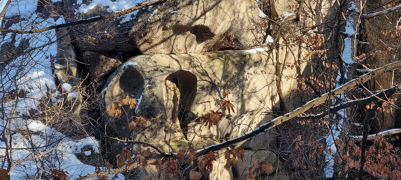 오늘은 오봉능선, 포대능선이 주로 걷는 길이다. 오봉능선으로 올라와서 포대능선으로 걷고 하산을 한다. 친구가 재미난 바위를 찾을 수 있고 그것을 볼 수 있다고 한만큼 기대를 한다. 원도봉을 오르고 그곳에서 멀리 정상을 바라다 보고 포대능선을 담는다. 겨울 그리고 한 폭의 수묵화를 담을 뿐이다. 해골바위를 찾으러 간다. 망월사로 가는 길에서 갑자기 방향을 왼쪽으로 잡고 산불감시초소가 있는 봉으로 우회구간에 접어든다. 해골바위가 있다. 봄, 여름, 가을에는 우거진 숲 속에 숨어 있어 이를 찾을 수 없을 것인데, 겨울이라 앙상한 나무 사이에 해골바위가 자리 잡고 있다. 친구H가 말하기를 이 바위를 찾으러 3번인가 왔다고 한다.
