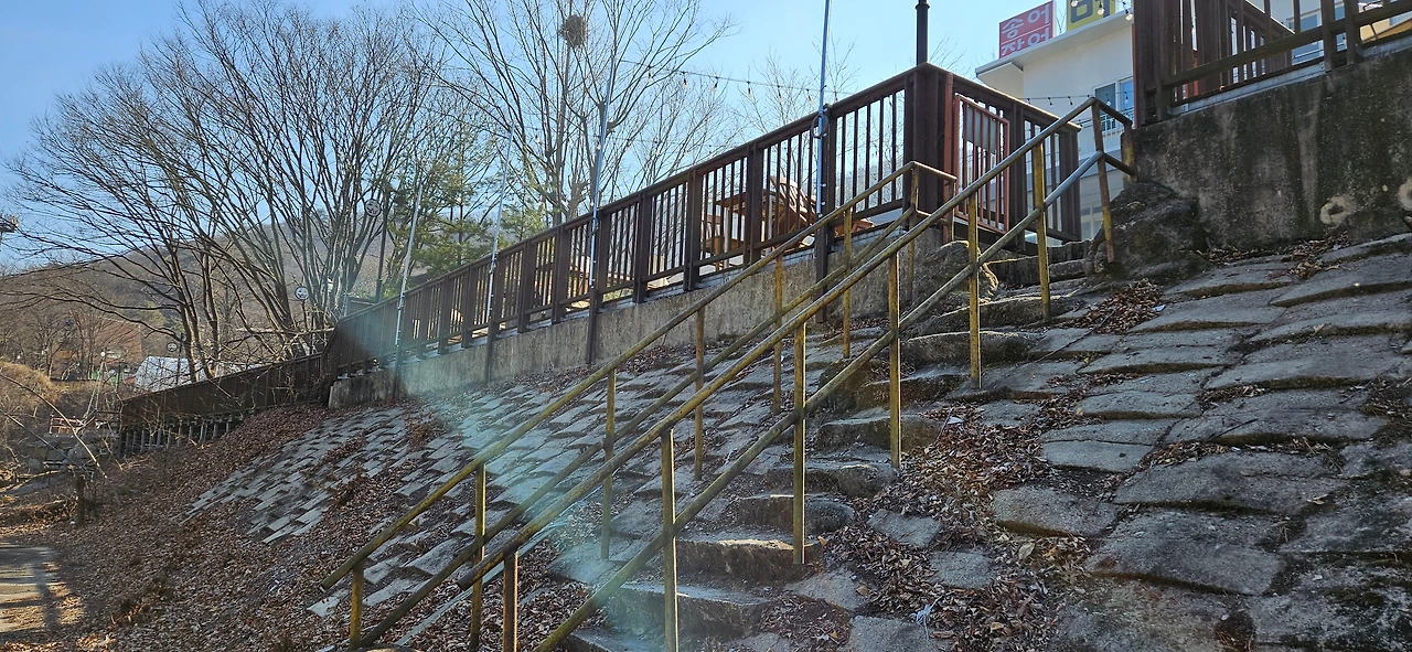 친구 H라 부하뇌동이 되어서 종주길을 좋아한다. 그리고 한적하다. 누구도 그리고 가지 않을 것이다. 그렇게 500m 이상을 걸어서 갈 사람은 드물다고 보아야 할 것이다. 오른쪽은 보도가 건설되어 있고 왼쪽은 없다. 왼쪽은 상가 형성이 되어 있어 들고 나는 차들이 계속적이다. 창우동까지 걸으면서 아무것도 생각이 없다. 하남정수장을 지나고 걷고 걸을 뿐이다. 위례 둘레길 표시가 있는 곳에서 산으로 가는 이정표가 없지만 산으로 올라간다. 처음부터 숨을 가쁘게 오른다. 한강이 검단산과 예봉산 사이를 지나면서 물이 산줄기를 파혜친 결과라고 보아야 할 것이다. 그 좁은 곳에 팔당댐이 있는 것이다. 팔당대교를 뒤로하고 오른다. 사람은 없고 소나무에서 떨어진 소나무 낙엽(갈비)이 부드럽게 바닥에 깔려있다. 예전 같으면 이 낙엽이 남아 있지 않았을 것인데 지금은 산에 가득하다. 그 예전이 40년 전의 얘기다.