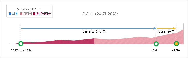 등산로의 난이도를 설명하는 그림을 보아도 매우 어려움이 어려움 이렇게 표시되어 있다. 2시간 20분 정도 걸리는 거리라고 보면 될 것이다. 사전예약을 하고 움직인다.