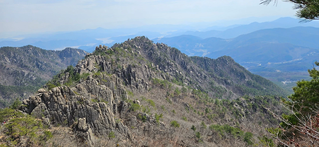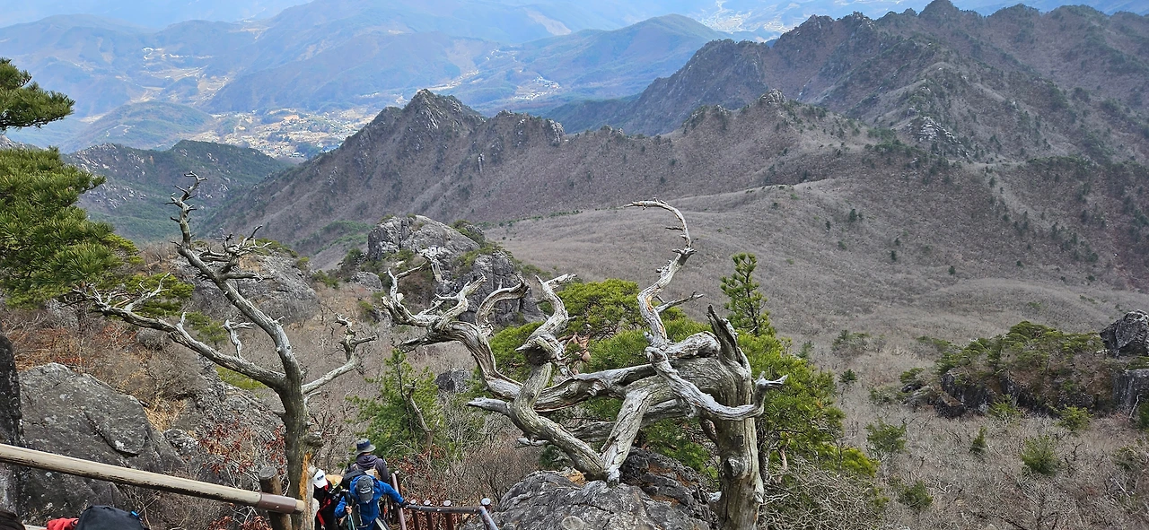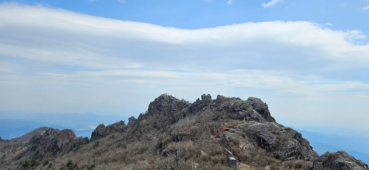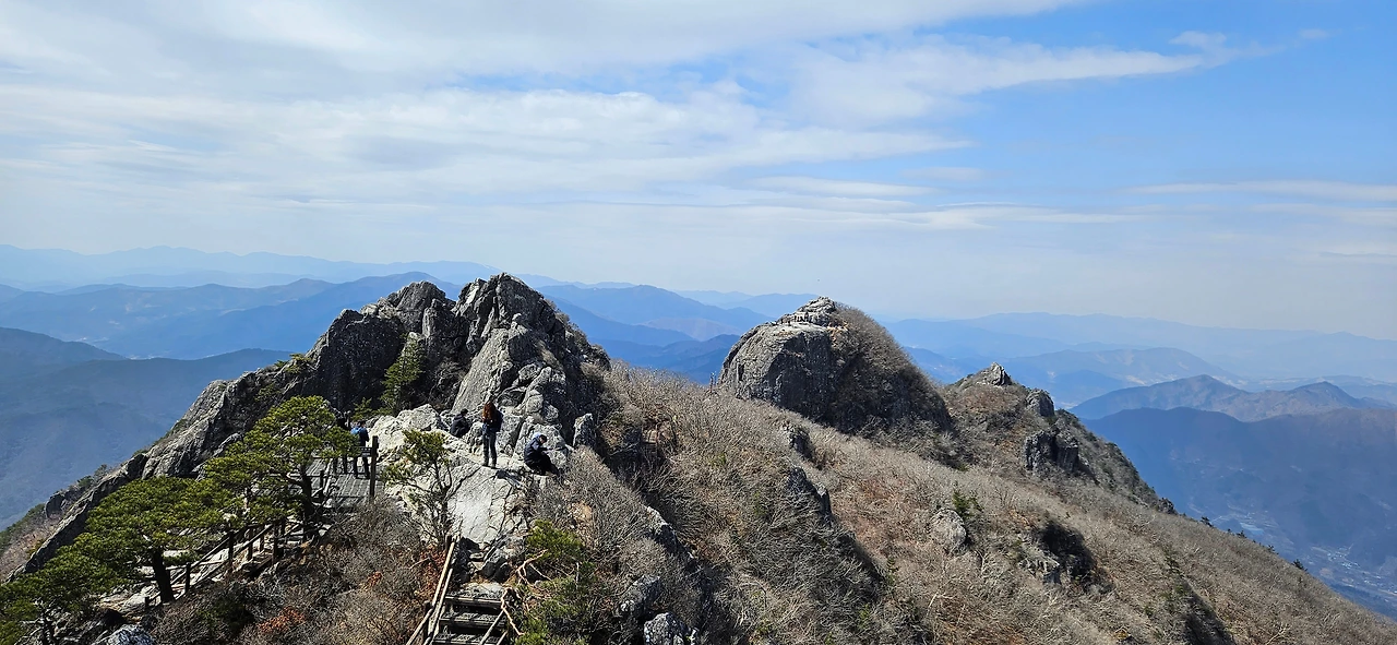 칠불봉을 바로 앞에 두고 이제 올라온길을 돌아 내려본다. 우리와 비슷하게 서성제에서부터 걸었던 부부가 있었는데 칠불봉을 바로 앞에 둔 봉우리까지는 같이 왔는데 아저씨만 혼자 왔다. 아내분이 지쳤다고 한다. 최근에 너무 많은 산행을 한 결과라고 자평하면서 내려간다.