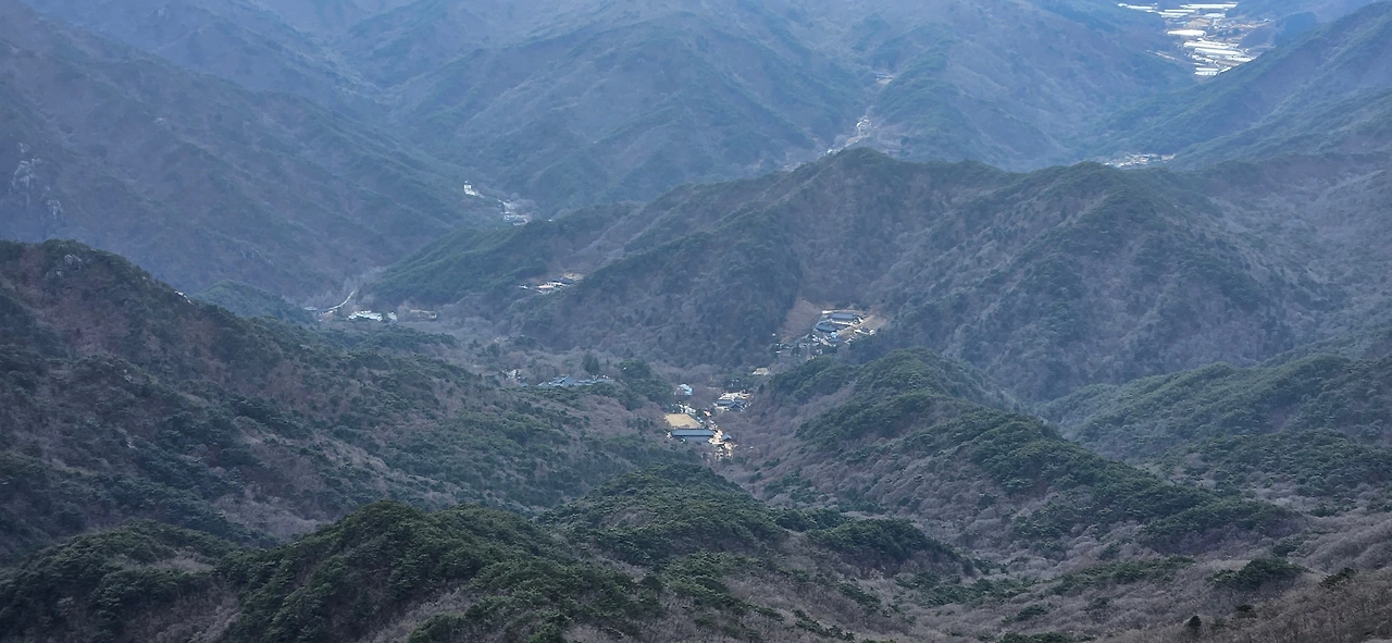 '아니요. 해인사는 산을 넘어야 있습니다. 거리도 멀고요... 정상에서 보입니다"