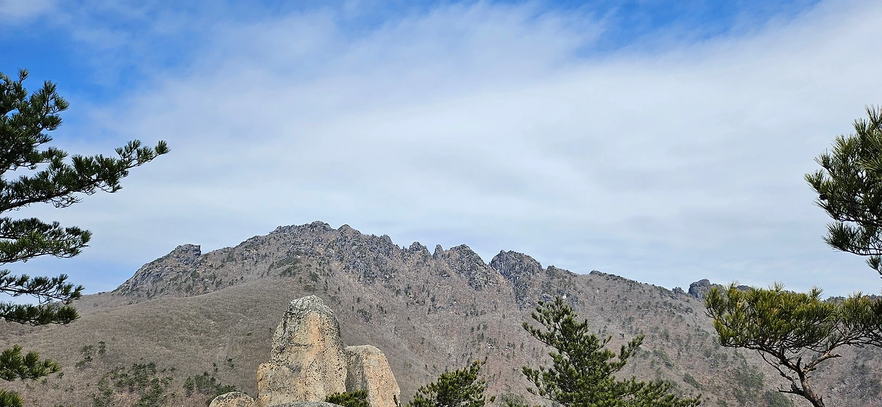 서성제에 도착한다. 아직은 수묵화가 그대로다. 다만, 검은색이 없다는 것에 감사를 한다. 수묵화에서 검은색이 많으면 큰일이다. 초록이 물들 때는 다른 모습이겠지만 겨울의 모습과 가야산 정상의 암릉이 어우러져 있는 모습이 좋다. 상아덤에서 서성제를 내려서고 가야산 정상을 향해 오른다. 산행의 어려움을 표시한 구간을 보면 보통이라고 표시되어 있다. 하지만, 데크가 시작되는 지점부터는 어려움이 있다고 표시를 하여야 될 것 같다. 데크가 있어서 어려움이 없겠지만 가파름은 계속이다. 700m 정도 남겨두고서 계속하여 계단을 오르는 것이다. 한 곳을 올라서면 또 한 곳이 보인다. 그곳이 칠불봉이다. 칠불봉을 오르면 이제는 끝났다고 보아야 할 것이다. 하지만, 칠불봉이 정상이라고 하기도 하고 우도봉 또는 상왕봉이 정상이라고도 한다.