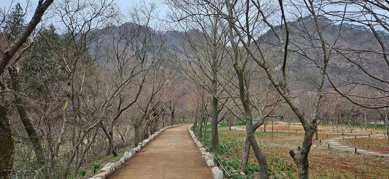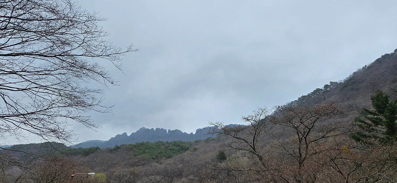 내장산 공원에 도착하였다. 공원지역에 운행하고 있는 셔틀버스가 비성수기에는 10시부터 17시까지 운행을 하는데 우리는 9시에 도착하여 걸어서 올라간다. 자동차길보다 산책로를 따라 올라간다. 왼쪽으로 내장천이다. 그리고 오른쪽은 봄을 맞이하여 새싹이 올라오고 있다. 물소리가 너무 좋다. 케이브라 주차장이 있는 곳까지 산책길을 걸으면서 이런 얘기 저런 얘기로 꽃을 피운다. 그러다가 상사화 얘기가 나왔다. 주변에 올라오고 있는 새싹이 올라온 것이 상사화인지 원추리인지 궁금하다가 상사화는 꽃과 잎이 다른 시기에 피어 만날 수 없는 연인에 빗대어 표현된다고 하는 얘기를 듣고 그렇게 그리워하여서 상사화가 되었다는 사실이 아이러니하다. 공원을 거니는 되 오른쪽 산위가 너무 멋있다. 저 봉우리 이름이 무엇인지 모르지만 멋있어서 담는다.