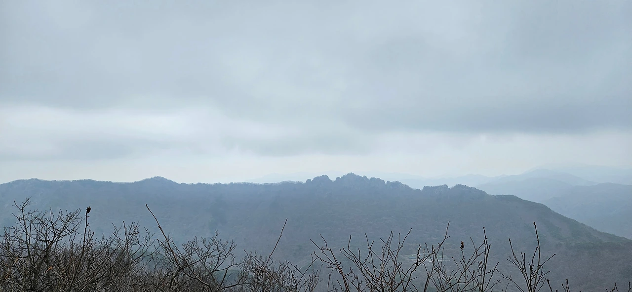 이제 연지봉이다. 망해봉에서 연지봉까지의 거리는 500m 정도이다 보니 봉우리를 내려오고 봉우리 올라가니 연지봉이다. 네 개의 봉우리를 지나고 오늘 첫 번째 목표인 까치봉으로 간다. 까치봉에서 탈출을 할 것인지 신선봉으로 갈 것인지 결정을 하여야 한다. 연지봉에서 바라다본 내장산은 구름 속에 쌓여있다. 아무것도 볼 수가 없어서 서둘러 까치봉으로 간다.