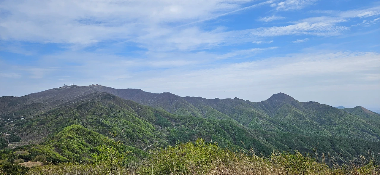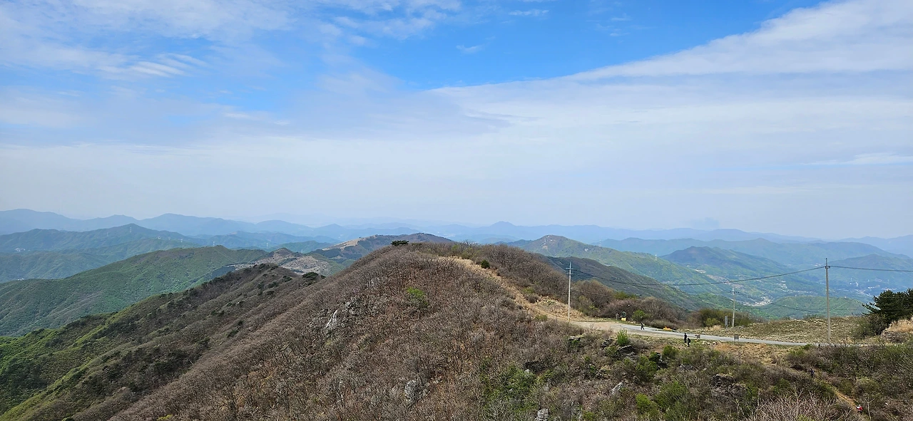 이제 1시간만 걸으면 정상까지 도착할 것이다. 앞에도 사람이 있고 뒤에도 사람이 있다는 것이 즐겁다. 앞에 가는 사람들이 4-5명, 뒤에 오는 사람들은 3-4명이다. 앞에 가는 사람들은 크게 이야기하면서 간다. 뒤에 오는 사람들은 조용하다. 앞에 가는 사람들이 마지막을 남겨두고 휴식을 취하고 있다. 용문봉 쪽에서 오는 등산로가 보인다. 친구들과 용문봉 쪽에서 이곳으로 왔다. 그때는 비가 오기 직전이라 하늘이 잔뜩 흐렸었는데 오늘은 미세먼지가 예보가 되어 있었는데 너무나 날씨가 좋다. 정상을 향해가는 데크가 시작된다. 장군봉을 가는 길이 있다. 이 길을 기억하고 정상으로 발길을 옮긴다.