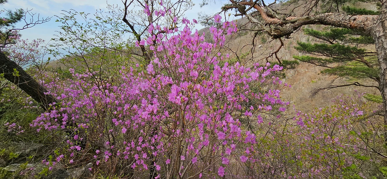 장군봉을 거쳐 유명산까지 간다. 장군봉으로 가는 갈림길에서 장군봉 쪽에서 오는 사람을 만났다. 유명산까지 간다고 하니 이곳에서 8km를 걸어야 하는데 조망이 없어서 재미없다고 한다. 나도 이 길을 친구랑 걸어보았는데 그렇게 재미있는 구간이 아니고, 이른 봄 진흙탕이 된 길을 걸어본 기억이 새삼스럽다. 그때는 이른 봄이었고 이제는 봄이 한창이다. 봄이 없어지는데 무슨 이름봄이고 봄이 한창인지 모르겠다. 등산로 주변에 피어 있는 야생화가 봄을 만끽하게 한다. 산 아래에서는 봄과 여름이 공존하고 있는데 산은 겨울과 봄이 공존하고 있다. 가을이 되면 가을과 여름이 공존하고 겨울과 가을이 공존한다.