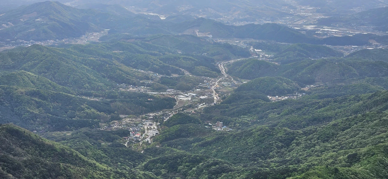 배너머 고개까지 내려가면서 어려움은 없다. 단지 계속 내려가면서 오른쪽에 있는 어비산 능선이 보인다. 어비산 능선 끝이 어비산이다. 그 어비산 능선을 보고 내가 제대로 걷는지 확인할 뿐이다. 아무것도 보이지 않고 그냥 임도를 따라 내려갈 뿐이다.