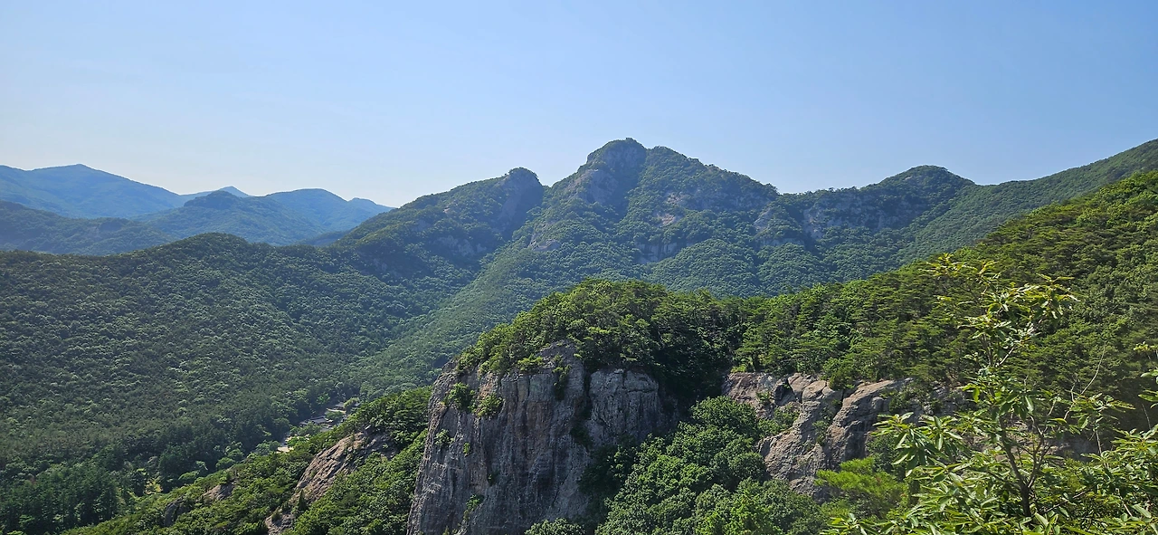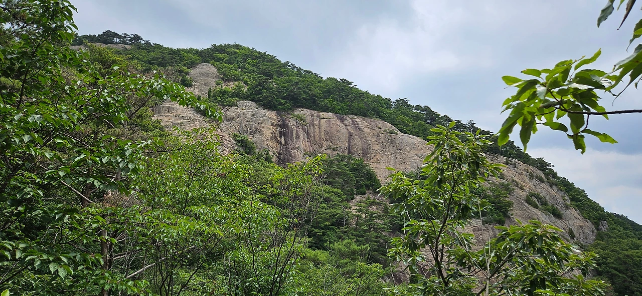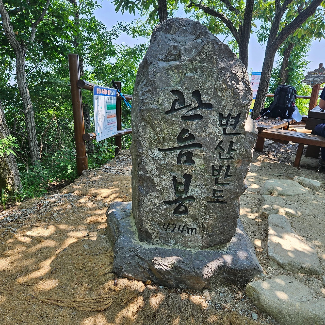 관음봉 삼거리에 도착한다. 관음봉을 한 바퀴 돌아서 관음봉을 오르는 것이다. 오르면서 언제쯤 정상으로 등산로가 방향을 바꿀 것인지 궁금하지만 반바퀴를 돌아서 동쪽 끝 지점에서부터 방향을 정상으로 바꾼다. 우회하면서 비가 내리면 폭포가 되는 지점을 지나고 위에서 낙석이 되면 위험한 만큼 낙석방지를 위한 시설도 지난다. 정상으로 가는 길에서 힘차게 올라서본다. 정상석이 있고 멀리 경치를 볼 수 있도록 조망시설이 설치되어 있다. 이곳의 유명명소를 안내해 놓은 모습을 그대로 본다.