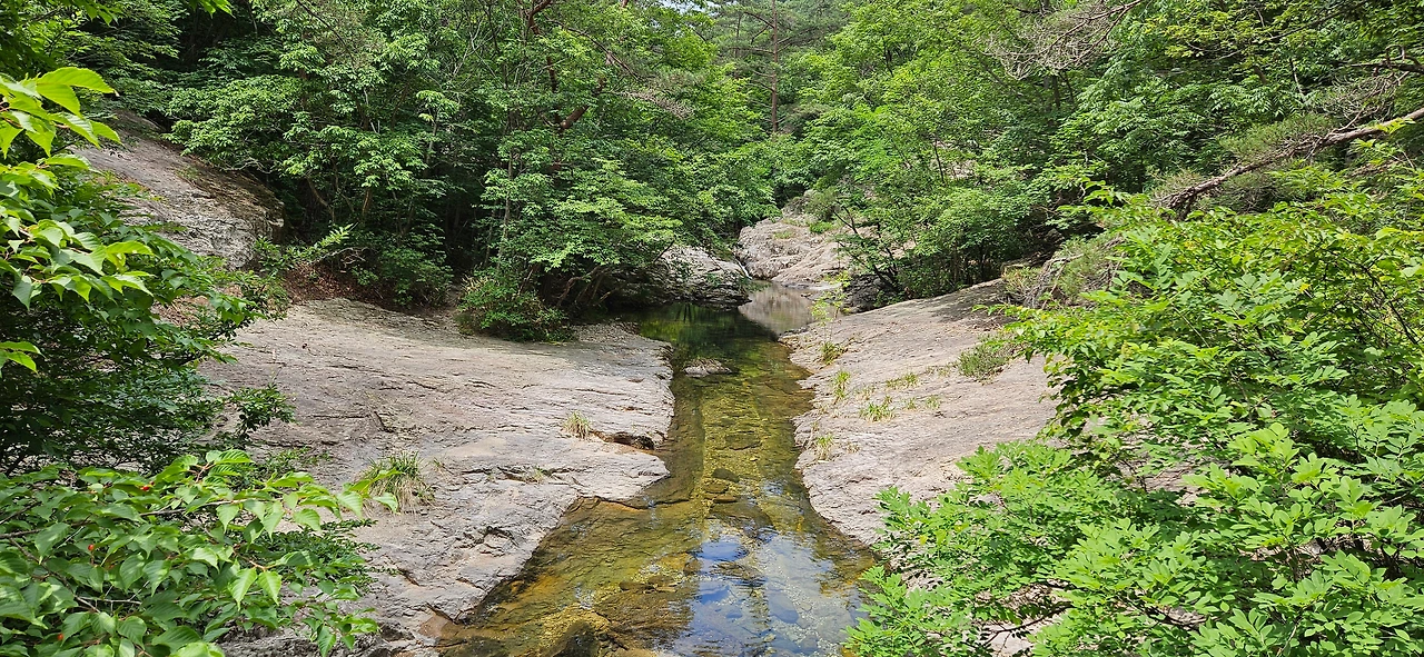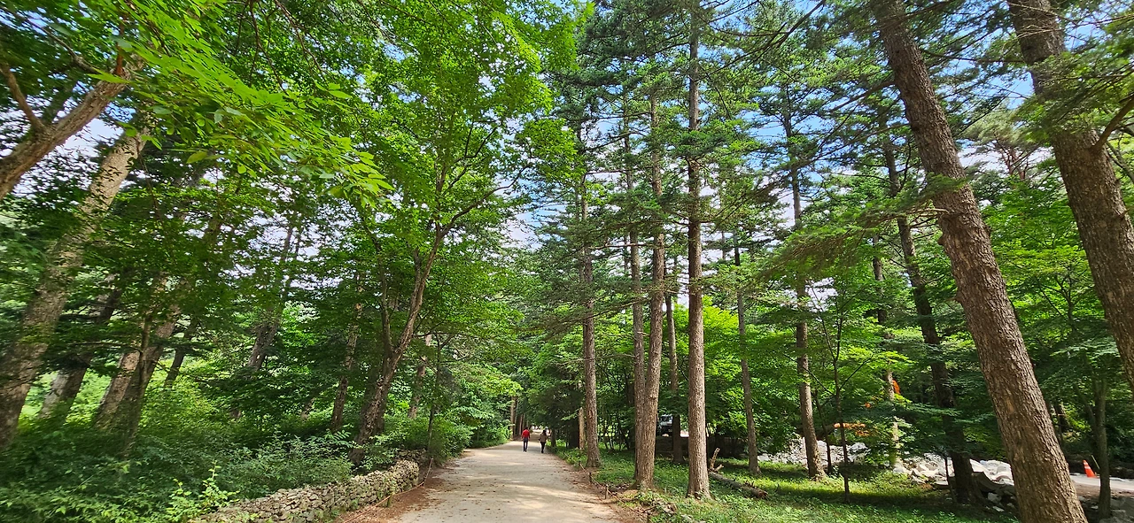 제백이제에 도착하여 이제 직소폭포로 내려간다. 직소폭포로 가는 길이 어떨지 모르기에 호기심만 두려움만이다. 거리는 1.5km라고 표기되어 있으니 두려움이 앞선다고 보아야 할 것이다. 하지만, 길이 너무 좋다. 개울은 맑은 물이 흐르고 오르고 내리는 길이 없이 평탄한기리 연속인 것이다. 1.5km를 걸으면서 점심시간을 알리는 시계는 울리지만 올라와서 이곳에서 그 알람을 제거하기로 하고 내려간다.