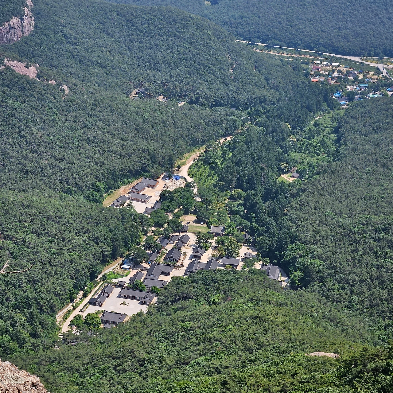 이제는 하산을 하여야 한다. 하산을 하는 코스는 관음봉 삼거리를 거쳐서 내소사로 가는 코스와 세봉, 세봉삼거리를 거쳐서 입암마을로 하산하는 코스가 있다. 우리는 올라온 길을 다시 내려가는 것은 재미없어서 세봉, 세봉삼거리를 지나서 입암마을로 하산하기로 하였다. 세봉으로 가는 첫 번째 봉우리에서 내려다본다. 내소사가 바로 아래로 보인다. 세봉을 올랐는데 그렇게 힘들지 않다.