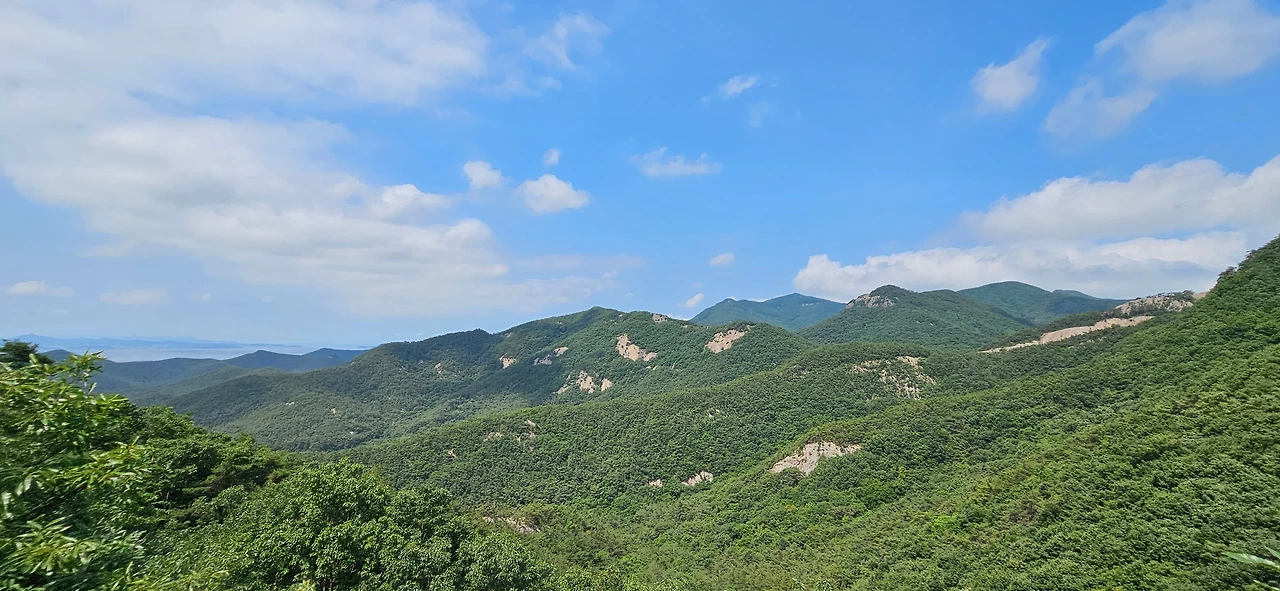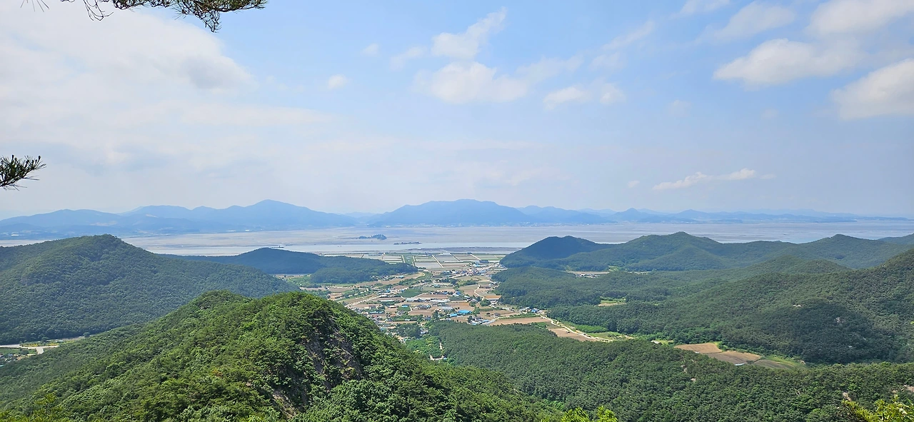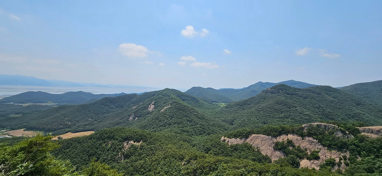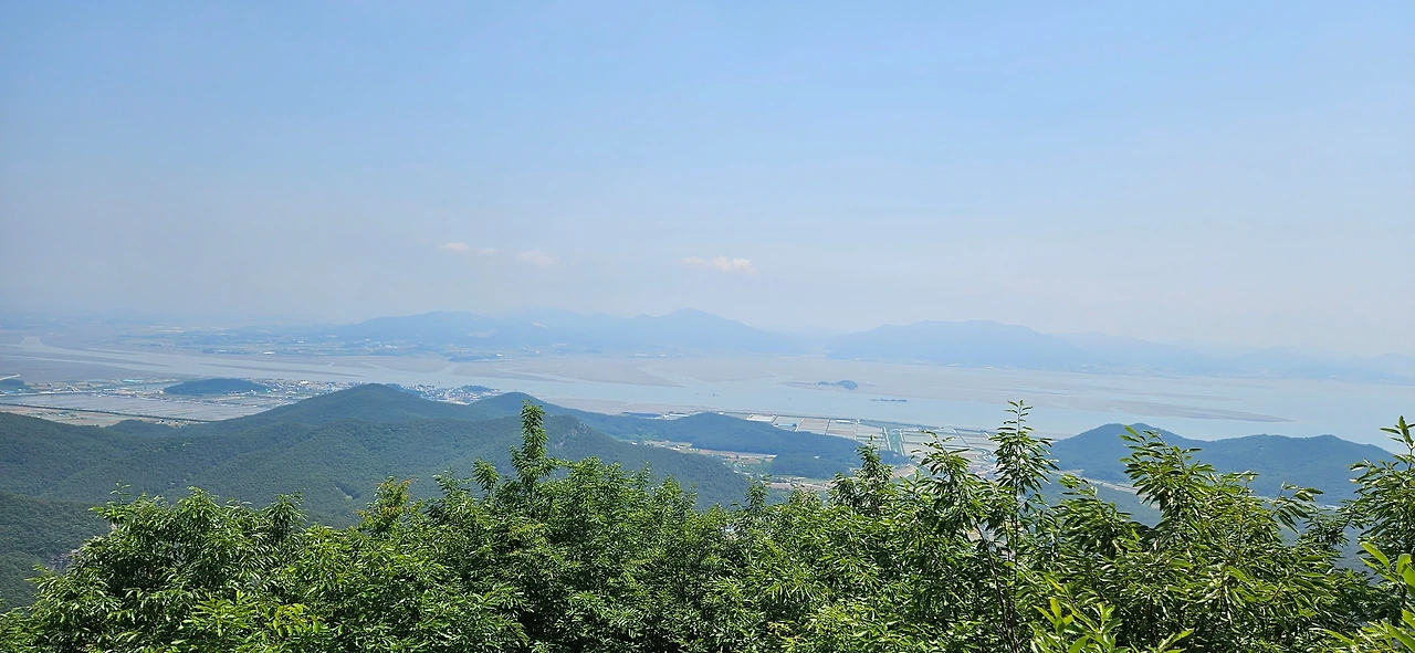 그곳에서 내소사를 담아본다. 산 위에서 사찰의 바라다보면 모습이 아릅답다고 할 수 있다. 그리고 멀리 줄포의 바다가 보인다. 오늘은 지금 시간이 썰물이라서 줄포 앞바다는 펄이다. 바닷물이 다 들어왔을 때의 풍경과 나갔을 때의 풍경이 다른 것인 바닷가 풍경이다. 그리고 서해안 근처의 산을 산행하면서 오랜만에 서해안을 본다. 보령의 오서산, 고창의 선운산, 영광의 불갑산을 올랐을 때 아무것도 본 기억이 없다. 단지 구름 속에 거닐었을 뿐인데 오늘은 그래도 서해안을 보여준다. 바로 앞에 있는 고창의 선운산의 모습이 드러나고 있다.