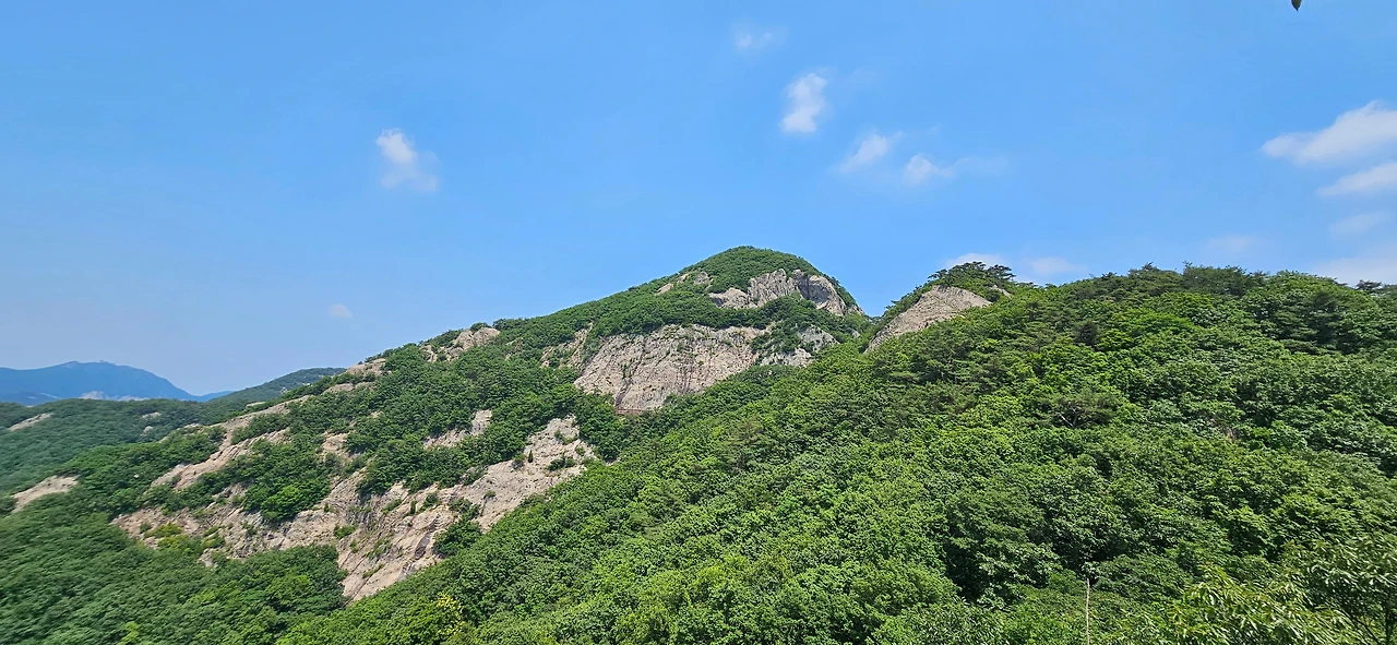 삼거리에 도착하여 한숨을 돌리고 주변을 돌아본다. 바람이 분다. 계곡아래로 내려가면 다른 방향이고 이제 우리는 능선을 따라 하산을 할 뿐이다. 한 번만 고개를 올라가면 이제 끝이다. 올라오는 사람이 있다. 그리고 그분은 이 등산로를 잘 알고 있는 것 같다. 이제 한 번만 오르면 된다고 하였다. 우리도 그것을 믿고 내려왔다. 그런데 앞에 있는 봉우리가 있다. 저 봉우리를 또 올라야 하는지 하고 걱정을 하는데 우회하는 길이 있다. 산을 내려가면서 하산하는 길이 너무 좋다.