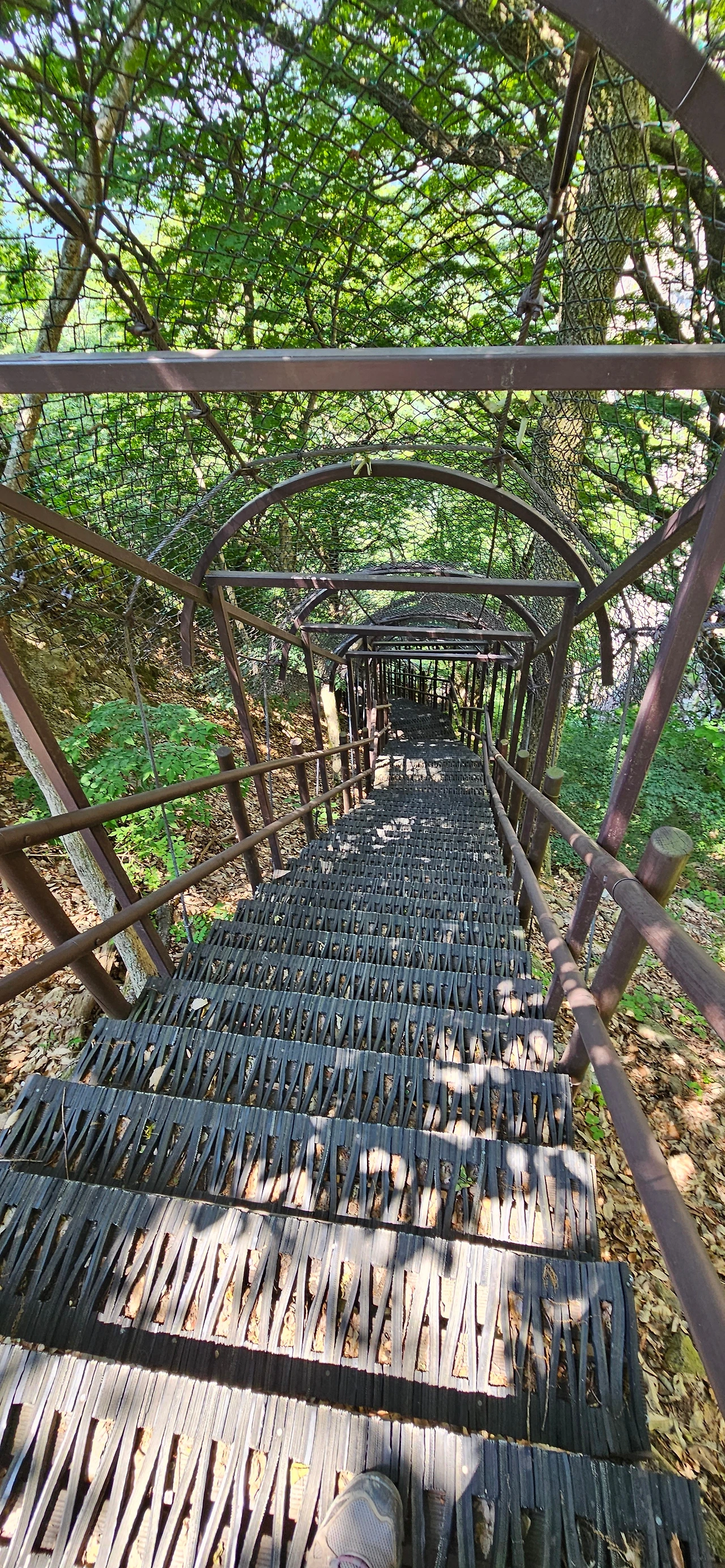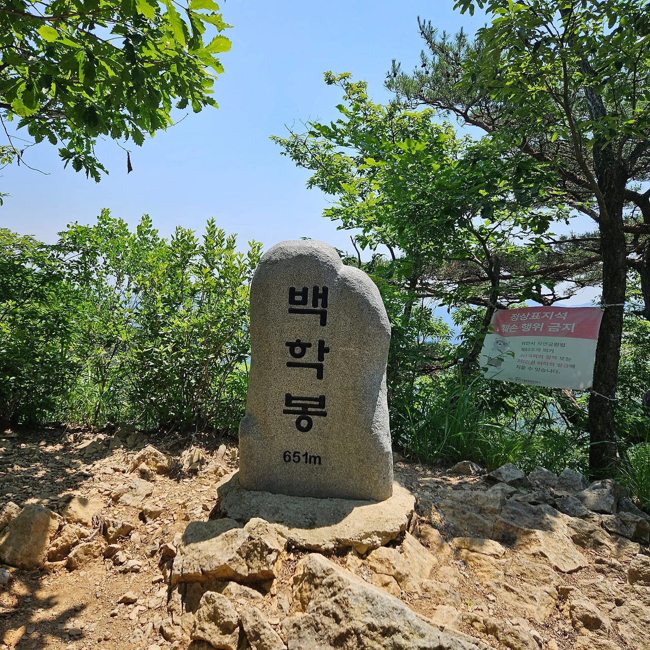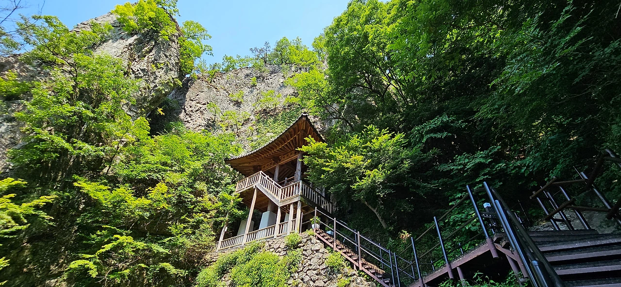 오르고 오르다 보면 목표가 보인다. 그것인 인생이고 등산이다. 백학봉을 오르면서 그것이 힘들다는 것을 그대로 느낀다. 약사암에서 한숨을 돌이키고 영천굴에서 약수를 한 모금 마시고 영천굴에 조성된 관음전에서 불교신자들은 인사를 하고 다시 오른다. 이제는 진짜 힘들다고 보아야 할 것이다. 일직선으로 그대로 놓인 데크는 끝없이 계단을 만들고 있다. 저 길을 그때는 내려왔는데 그때는 데크도 없이 일반적인 산을 돌아 돌아 내려왔다. 흙과 바위가 어우러진 계단을 지속적으로 내려왔으니 내 도가니가 도가니 탕이 되었을 것이다. 그때 느꼈을 때 도가니에 열이 나는 것을 느꼈다. 오르면서 우리 뒤에 왔던 등산객이 우리가 약사암, 영천굴에서 지체하는 사이 앞서갔는데 가파른 계단을 오르면서 지쳐가고 있었다. 그들을 따라잡고 또 오른다. 숨을 가다듬을 수 있게 계단을 오르고 쉬고 있다. 그리고 우리도 주변을 돌아본다. 바로 옆에 백학봉의 깎아지른 절벽이 보인다. 그곳을 또 돌아서 올라가야 한다.