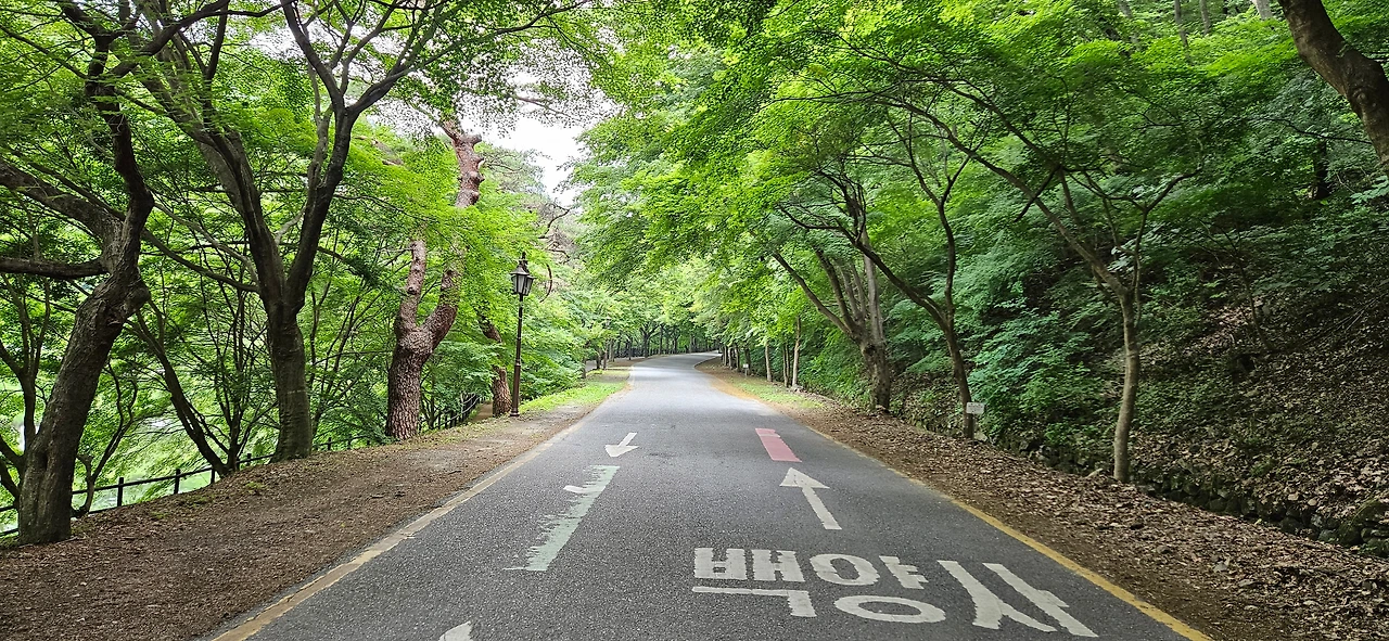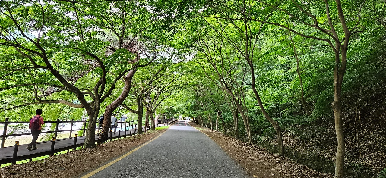 대전에서 출발한다. 대전에서 출발할 때 백양사를 목적지로 설정하였다. 호남고속도로를 달리던 차량은 내장산 IC를 지나서 입암 터널을 지나면서 장성군으로 들어간다. 예전 우리 조상들은 갈재를 넘어서 전남북을 오갔는데 요즈음은 그곳에 터널이 많다. 호남고속도로가 지나가고 1번 국도가 지나가고 고속철이 지나가면 일반철도 호남선이 지나간다. 그리고 옛날 호남선 철도가 터널을 그대로 유지하고 있다. 그곳을 지나면 장성으로 들어간다. 장성 시내로 들어가지 않고 백양사로 가는 길목에 접어들고 백양산 일주문 바로 전에 있는 주차장에 자동차를 주차시킨다. 백양사 일주문을 지나서 있는 주차장에도 자동차를 주차할 수 있다. 그곳은 문화재 관람료를 받지 않지만 주차료를 내어야 한다. 우리는 일주문 바로 전에 있는 주차장에 자동차를 주차시키고 그 길을 따라 걸었다. 산책로가 좋다. 이른 아침이라 사람들이 없고 자동차도 없다. 그 길 가운데 서서 인증샷도 남기고 걸어 본다. 그리고 그 경치를 사진으로 담았다. 가을날 그곳은 내장산 단풍 못지않게 절경을 이룰 것이다.