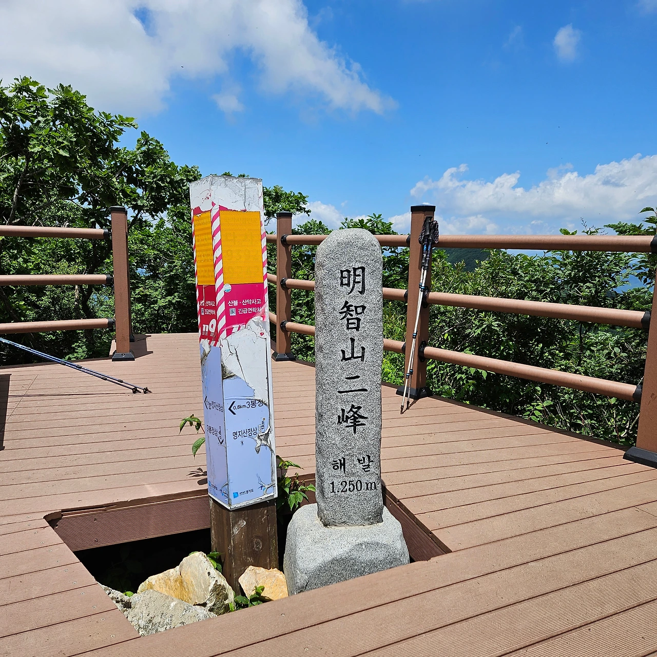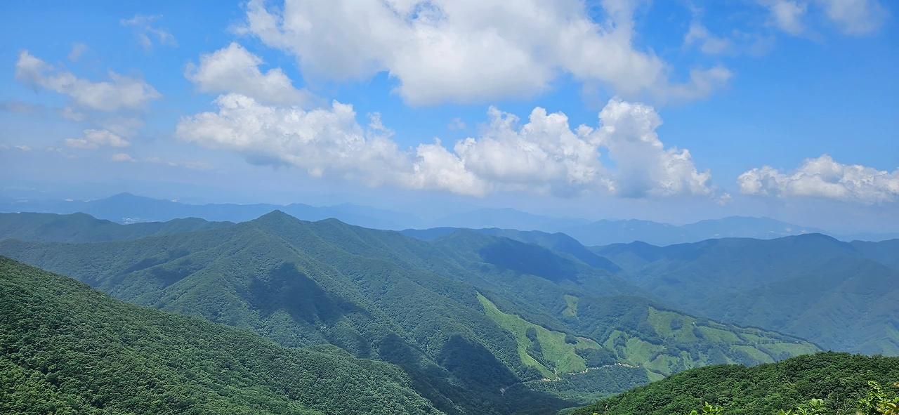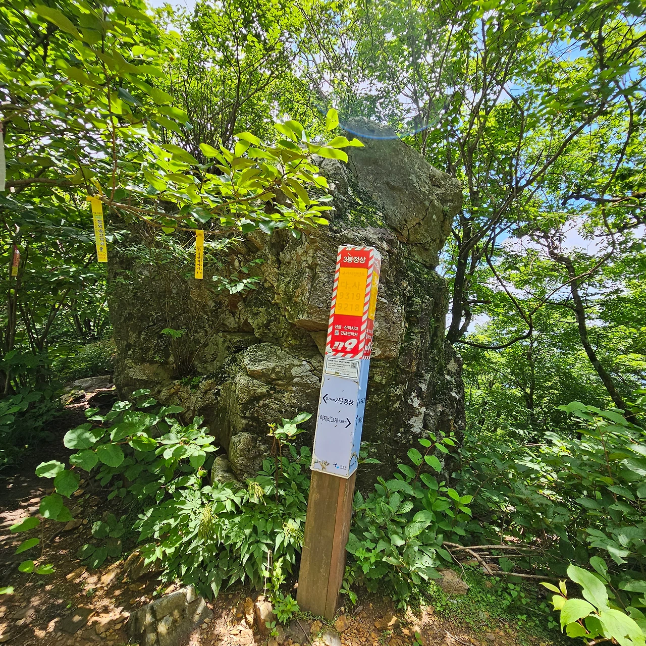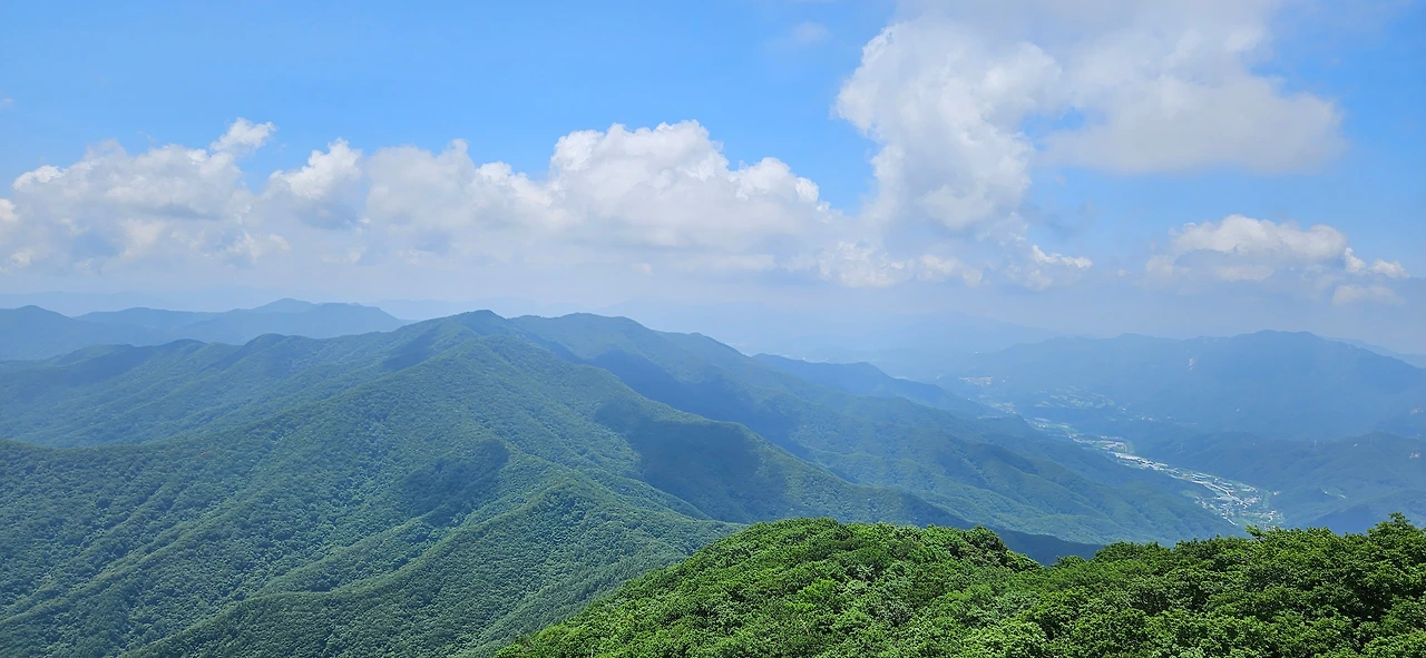명지 3봉에 도착하였다. 예전에는 전망대가 없었는데 이제는 360도를 모두 볼 수 있게 전망대가 설치되어 있다. 더운 여름날 바람이 불지만 태양이 이글거림에 따라 회피하고 싶지만 전망을 포기할 수 없어서 돌아본다. 이곳으로부터 1km 정도에 있는 곳이 명지 2봉이고 또 1km를 가야 정상인 것이다. 걷는 것은 자신이 있지만 더위가 문제다. 시원한 능선을 따라 걸으면서 쉬엄쉬엄 갈 뿐이다.