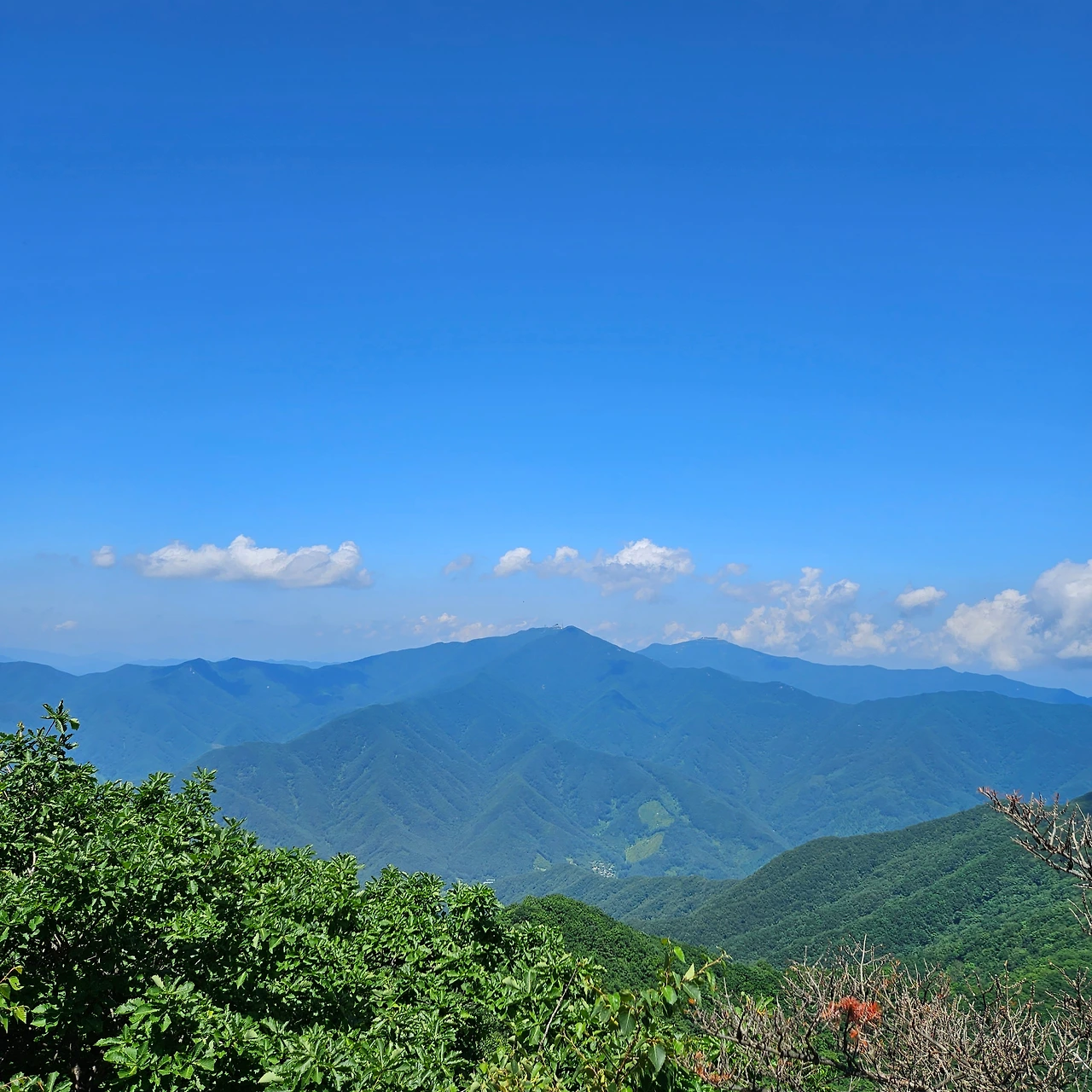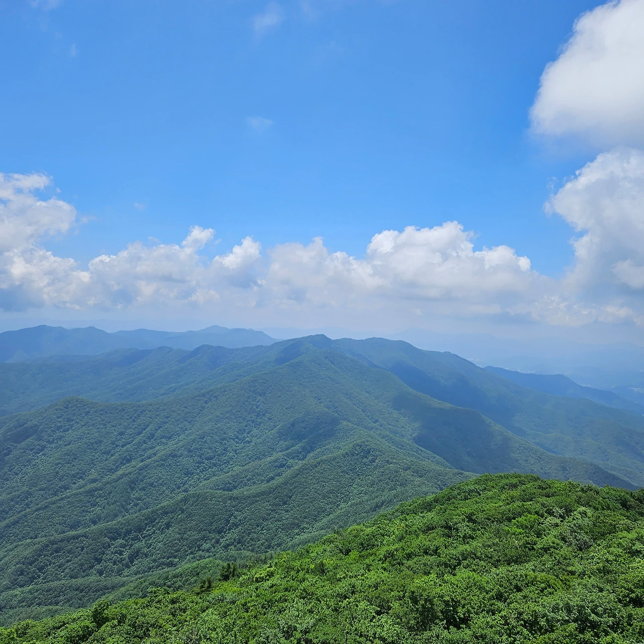 이제 명지산 정상으로 간다. 안부까지 600m, 안부에서 정상까지 600m다. 600m를 가면서 또 올라가야 하는데 하는 부담감이 생긴다. 오늘 안전 관련 메시지가 휴대폰으로 오는데 폭염경보가 내려졌다고 한다. 산 위에서는 그것을 인식을 못하지만 덥다는 것을 느끼면서 걸었다. 오르고 내리고 오르고 내리면서 안부에 도착하고 오르기 시작한다. 산이 저만큼 있고 우리는 오르는 것이다. 삶에서 목적지가 보이고 경로가 보인다면 그 삶은 보다 쉬울 것이다. 하지만, 삶에서 내가 목표한 것은 있는데 그 목적지는 잘 보이지 않는다. 그래서 오르고 내리고 하는 것이다. 그것이 내 삶의 연속이라고 보아야 할 것이다. 명지산 정상을 바로 앞에 두고 계곡을 내려가는 사람이 있다. 명지 2봉까지 왔던 사람들이 이곳을 찾지 못하여 명지 2봉까지 온 것이다.