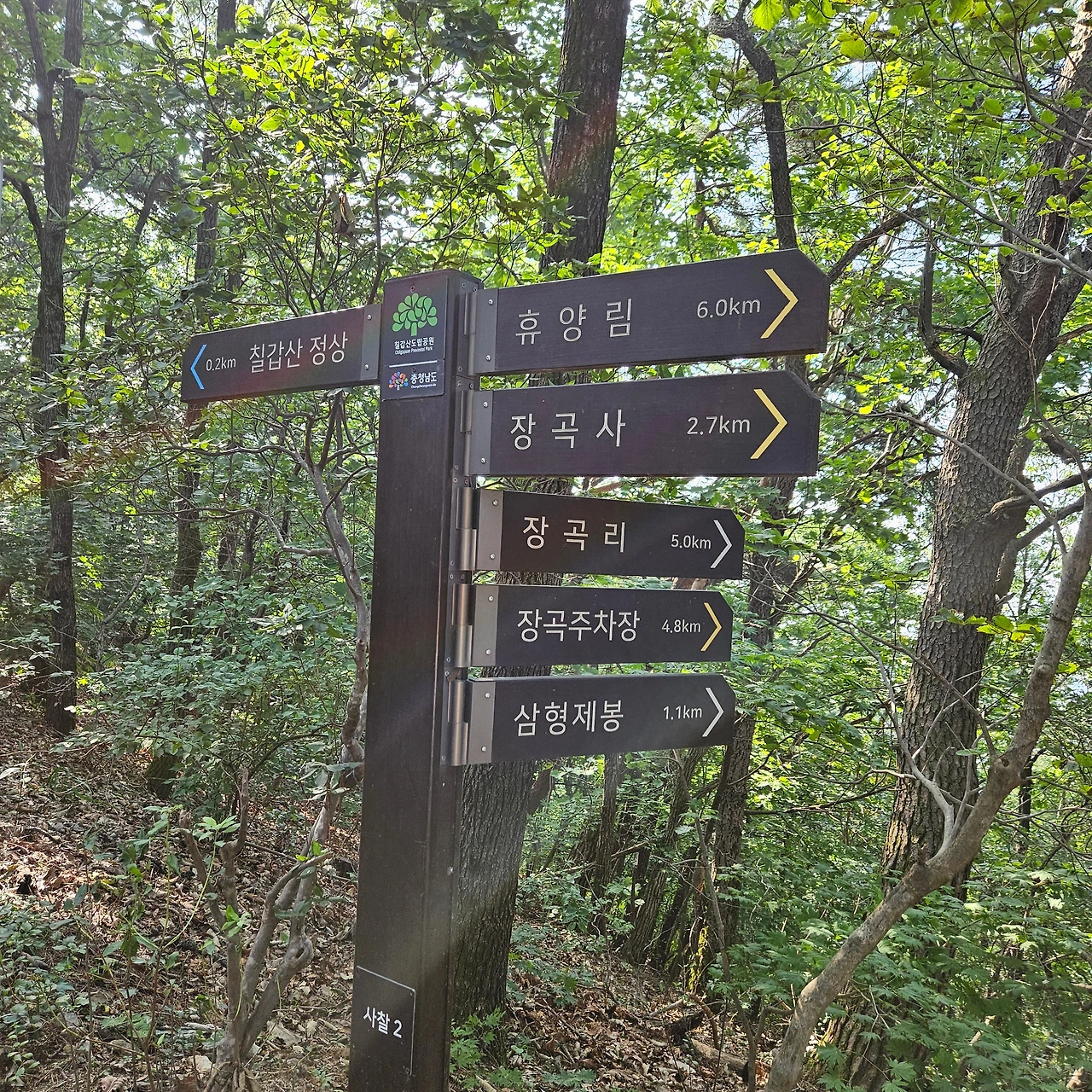 원점회귀 코스를 찾았다. 제일 쉬운 코스는 칠갑광장이라는 곳에서부터 출발하여 평지를 걷듯이 걷다가 산을 오르는 코스인데 어린이 등을 데리고 산행을 할 때 제격인 코스다. 나는 원점회귀 코스를 선택하였다. 원점회귀 코스는 장곡주차장에 자동차를 주차하고 이웃하고 있는 등산로를 이용하여 오르고 정상에서 장곡사로 하산하여 장곡사에서 장곡주차장까지 1.3km를 걸는 코스다. 거리는 10km다. 그리고 장곡주차장에서 출발하여 삼형제봉까지 가는 길이 오르내림도 있고 하여 재미난 코스라 하여 이곳을 선택하였다.