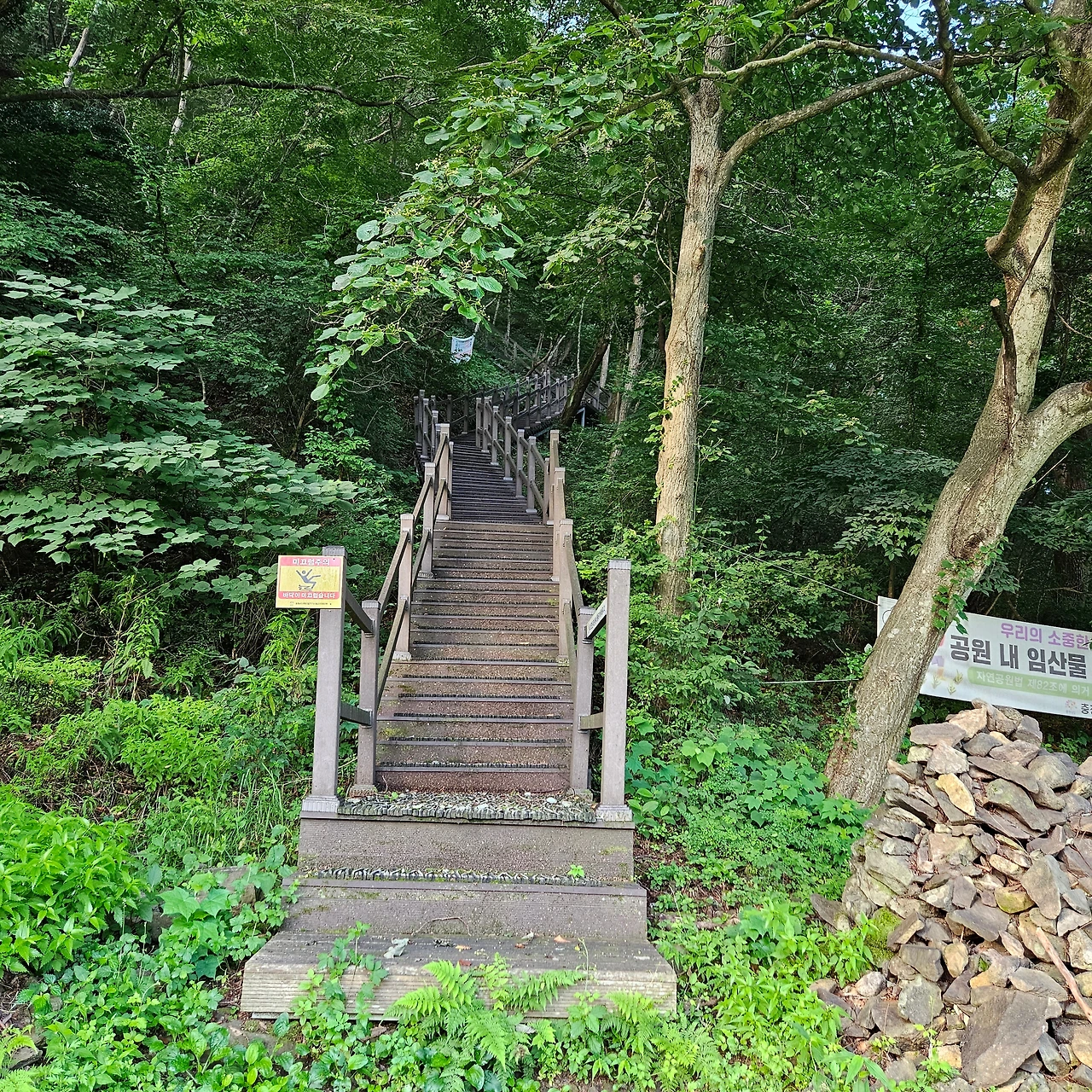 장곡사를 바로 앞에 두고 계단을 가파르게 내려간다. 사람들이 오르면서 물어본다. 정상에 사람이 얼마나 있는지? 등산객이 많은지? 물어본다. 내가 칠갑산을 몇 번 와본 기억이 없어서 어느 정도 있어야 많은 것인지 모르겠다 하니 그분이 오늘 주차장에 자동차가 없는 것을 보니 등산객이 없을 것이라고 한다.