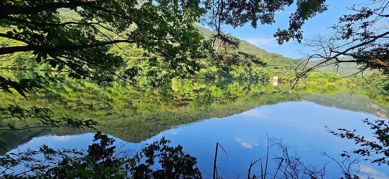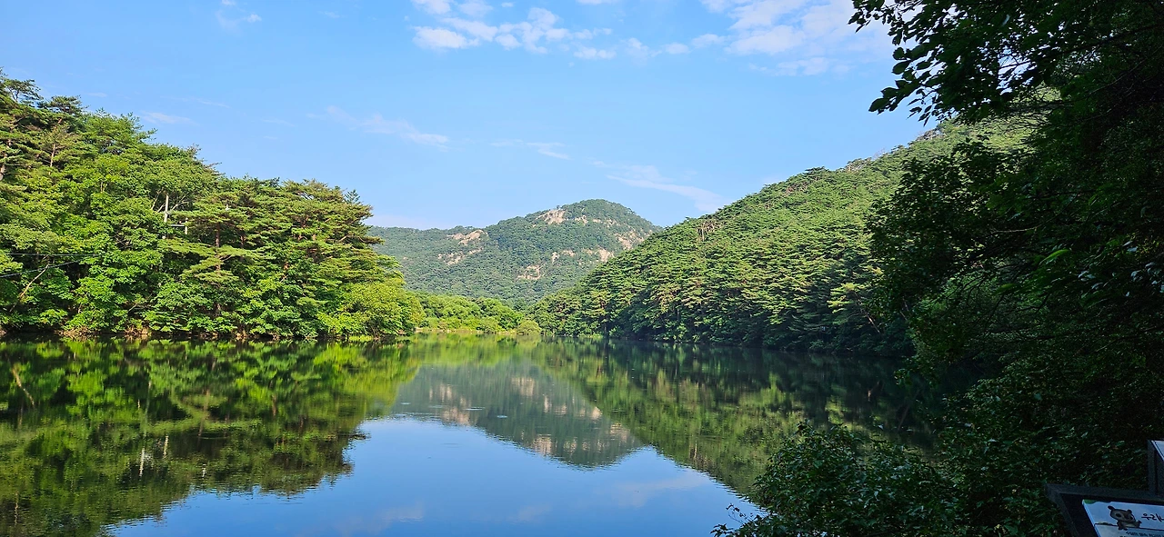 세조길이 폐쇄되었다고 하지만 폐쇄된 곳은 부분적이라고 하였고 세심정 부근이라는 안내를 받았던 만큼 폐쇄되지 않았다면 걷기 좋은 길을 걷게 되는 것이다. 세조길 시작은 속리산 체험학습관에서 자연관찰로, 법주사삼거리, 저수지를 따라 걷는 경사가 완만한 탐방코스부터 시작이라고 보아야 할 것이다. 솔향 가득한 숲과 저수지 수변을 함께 감상할 수 있는 코스라고 안내되어 있다. 그냥 걷기 좋은 길을 걷다가 저수지를 만나면서 물속에 빠져 있는 산봉우리를 감상할 뿐이다.