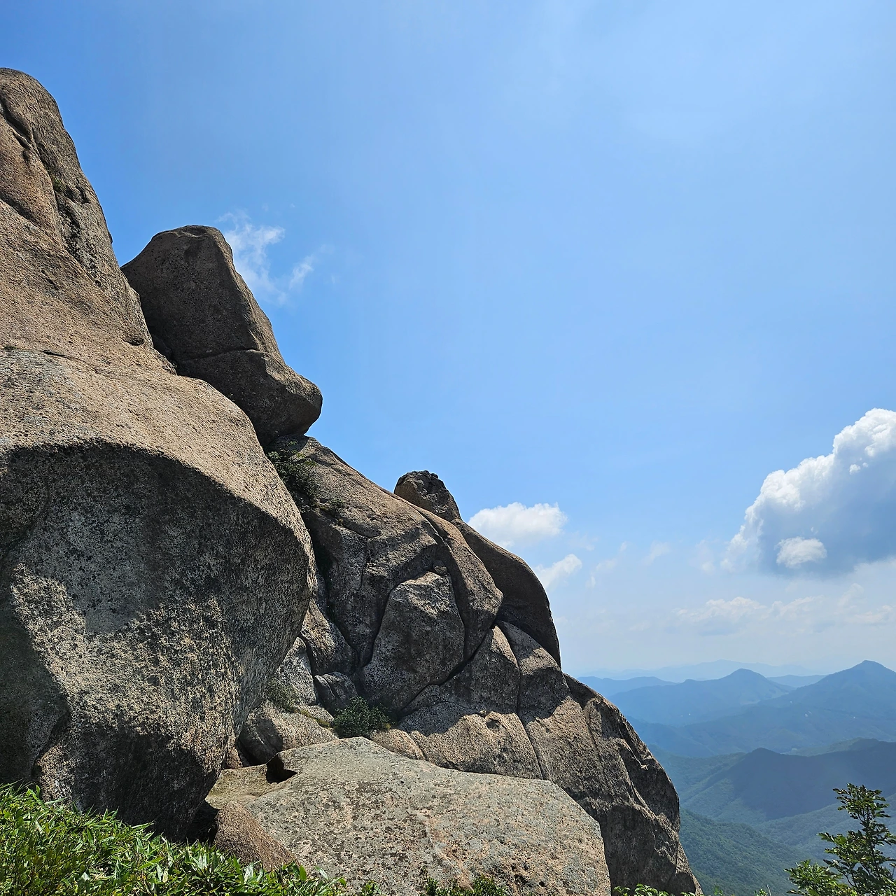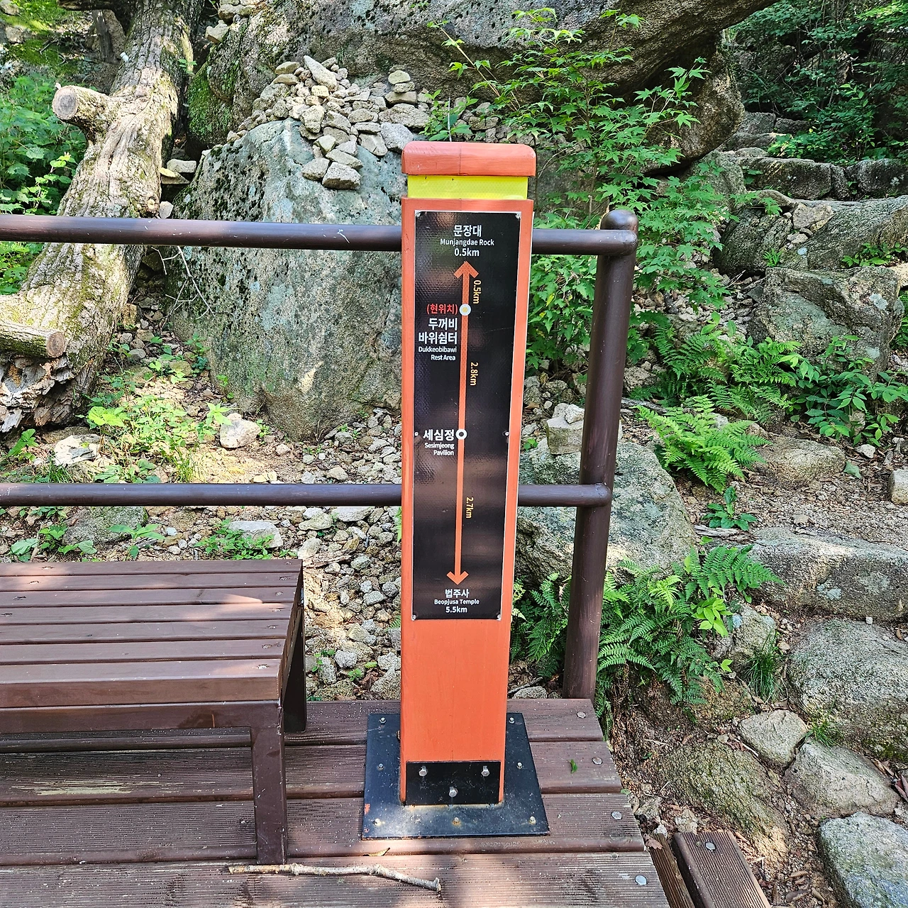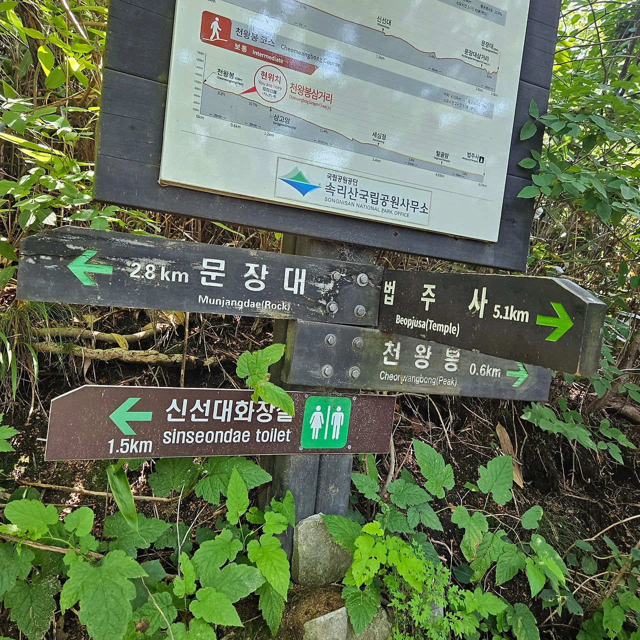 다시 길을 재촉하니 경업대로 내려가는 길이 나온다. 이곳에서부터 법주사까지 5.1km 이렇게 이정표가 표시되어 있다. 그리고 문장대는 1.3km다. 이제 2km만 더 가면 된다. 입석대가 있고 시원한 계곡에서 올라오는 바람이 있는 명소에 앉아 고독을 즐겨본다. 하지만, 너무 고독을 즐기면 위험하다고 할 수 있을 것이다.