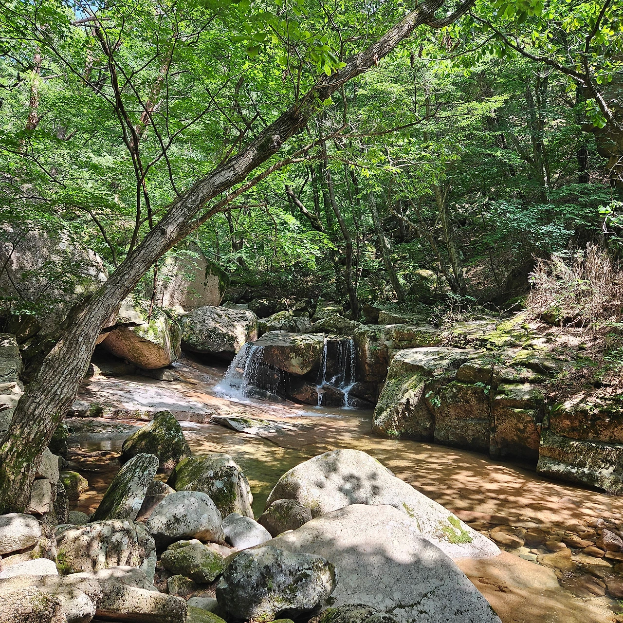 천왕봉 갈림길에 다시 돌아왔다. 사람들은 하산을 하는 사람과 문장대로 가는 사람 천왕봉으로 가는 사람으로 나누어져 있다. 나는 하산이다. 하산은 즐거움이 있지만 그래도 부드럽게 내려가는 것이 좋다고 본다. 이곳에서 법주사까지 5.1km다 경업대에서 법주사까지도 5.1km 그것이 그것과 같다고 보아야 할 것이다. 하산을 하면서 개울을 만나면 더욱 좋고 부드러운 내리막이면 더욱 좋다. 4년 전에 이 길을 걸었을 때는 가파름이 있었던 것 같은데 오늘은 아니길 바란다. 그래도 하산길은 가파르게 내려가는 곳도 있고 부드럽게 하산하는 길도 있다. 어느 순간에는 개울을 만났다. 그곳에 앉아서 조용히 사색에 잠겨보기도 하고 족욕도 한다. 6시간 정도 걸은 내 발에 휴식을 주는 것이다.