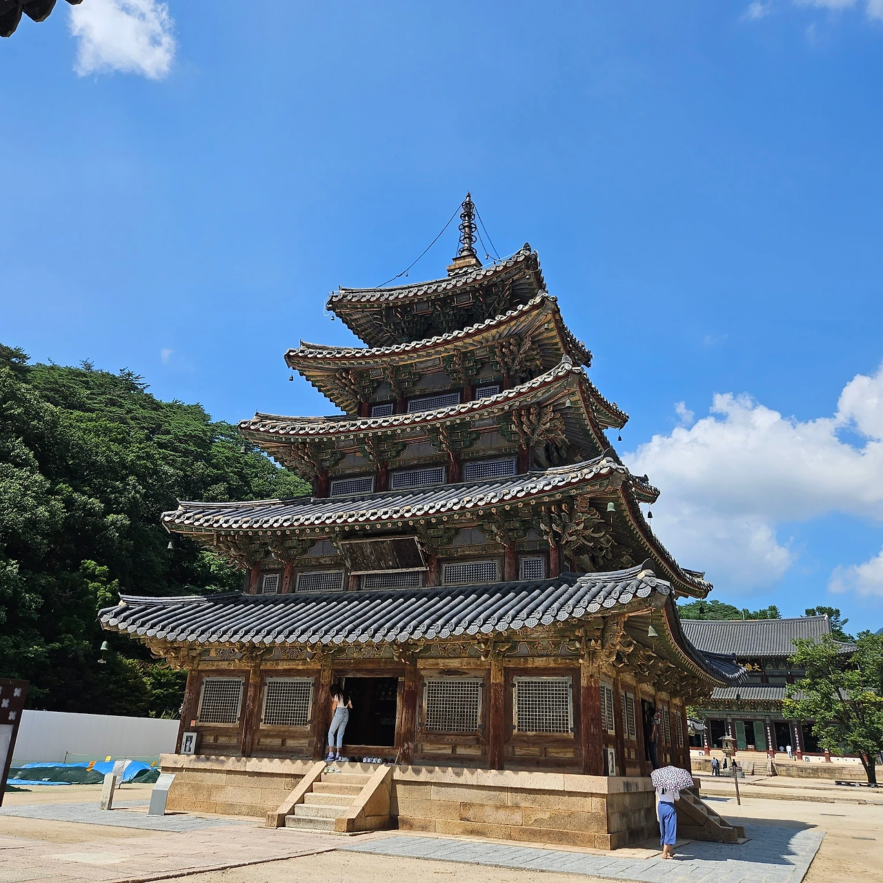 법주사에는 우리나라 수많은 탑 가운데 옛 모습을 그대로 간직하고 있는 유일한 목탑으로 국보 제55호인 법주사 팔상전이 있고, 높이 27m인 동양 최대의 거불인 금동미륵불상이 있다. 사실 우리가 거의 스쳐가는 석등이 있는데 쌍사자가 받쳐주고 있는 석등이라고 한다. 통일신라의 석등이 8각 기둥을 주로 사용하던 것에 비해 두 마리의 사자가 이를 대신하고 있어 당시로서는 상당히 획기적인 시도였다는 평가이다. 사실 당시에 사자라는 것을 어떻게 보고 만들어졌는지 상상이 되지 않는다.