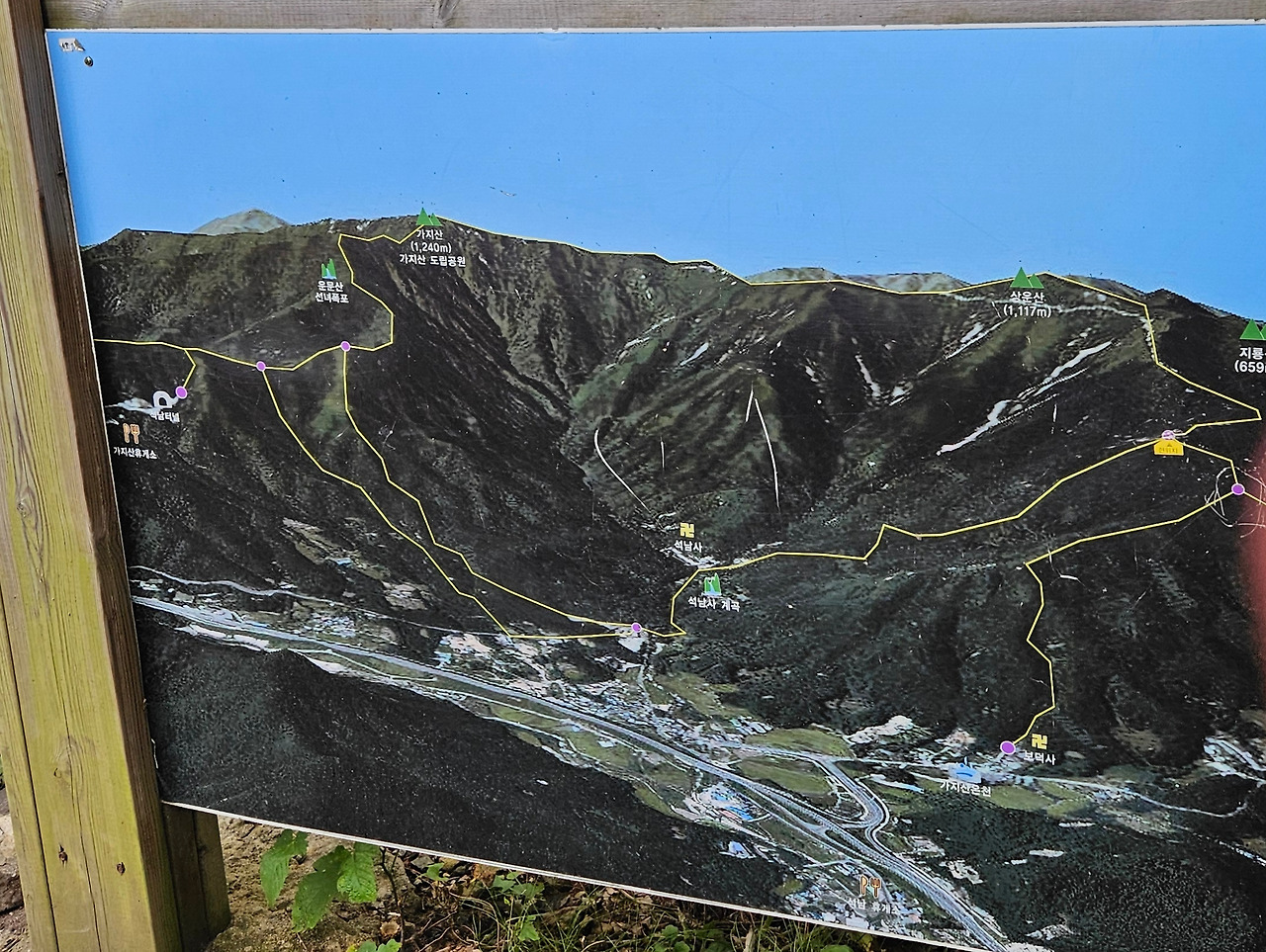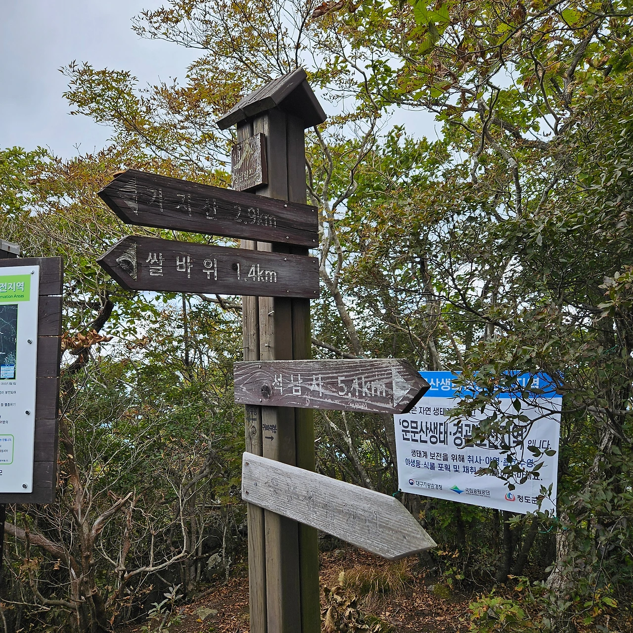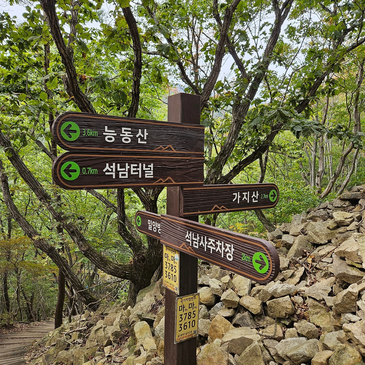 석남사 입구에서 우리는 고민을 한다. 가지산을 바로 올랐다가 그 길로 내려와서 능동산을 갈 것인지 아니면 가자신을 오르는 길과 내려오는 길을 다르게 할 것인지 고민을 하다가 오르는 길과 내려오는 길을 다르게 하기로 하였다. 하지만, 이것이 우리에게는 좀 더 많은 시간이 필요로 하게 되었다. 등산지도에 있는 석남사에서 쌀바위로 오르는 길을 찾지 못하고 귀바위로 가는 길로 들어선 것이다. 인터넷 지도만 보고 그렇게 간 것이 잘못이었다. 실제로 석남사 오른쪽으로 등산로가 정비되어 있고 석남사 쪽으로 난 등산로는 폐쇄되어 있었다.