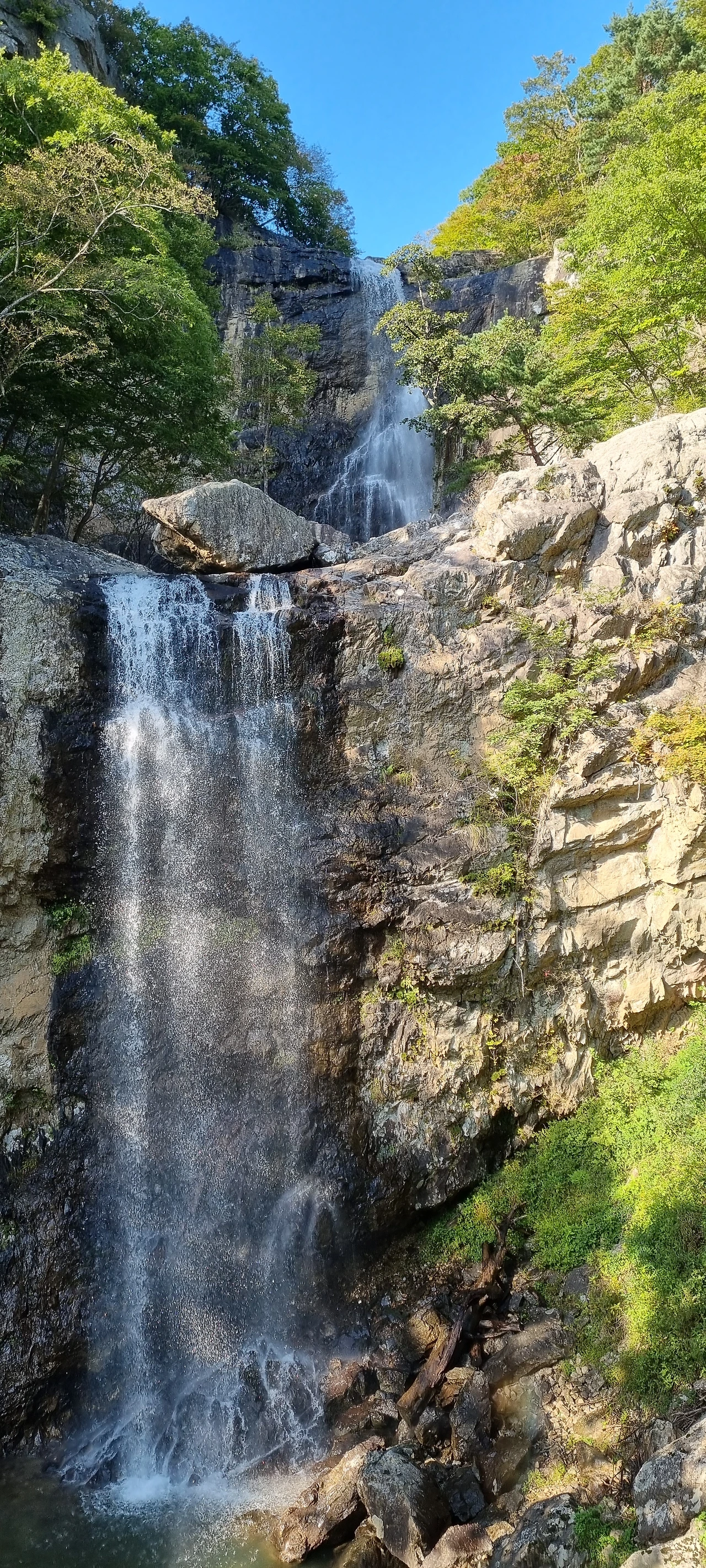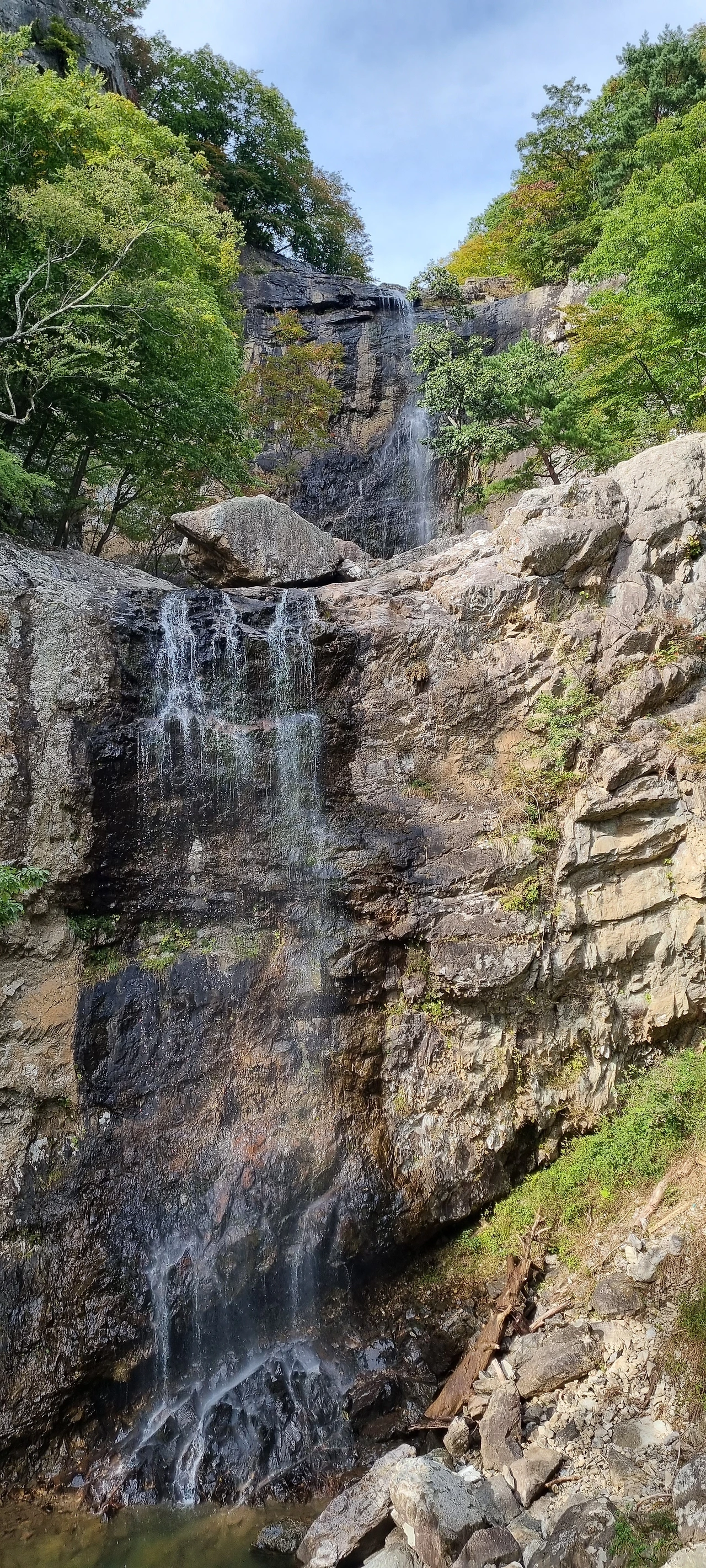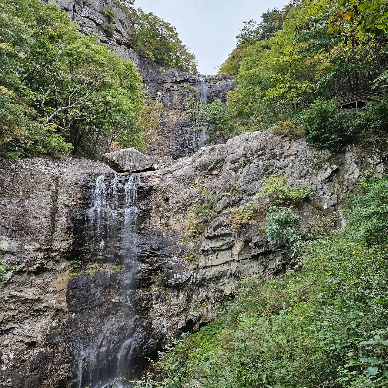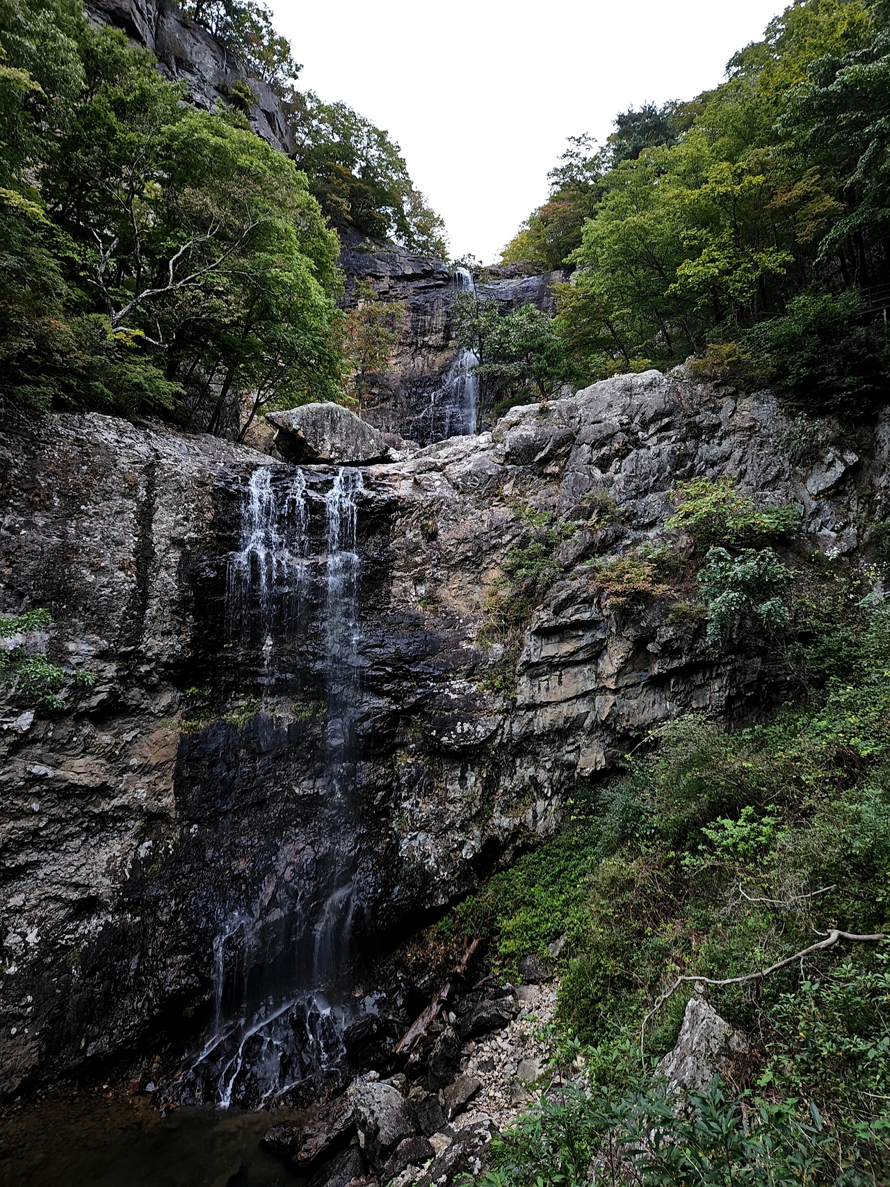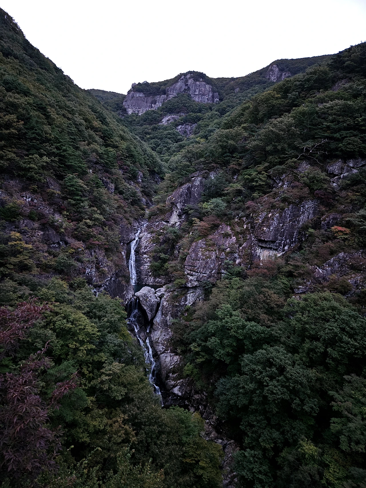 사자평에서 이제는 층층폭포를 거쳐 표충사로 이동을 한다. 우리는 층층폭포를 보기 위하여 어둠이 오기 전까지 걸었지만 어둠이 오고 있다. 층층폭포에서 많은 물이 흐르고 있다면 그 경치가 경이로울 것이지만 그렇지 못하다는 것이 아쉽다. 여름날 이곳에 온다면 더 멋진 경치를 볼 것이다. 비가 오고 난 다음 이 계곡의 폭포는 장광을 이룰 것이다. 층층폭포, 구룡폭포, 흑룡폭포다.