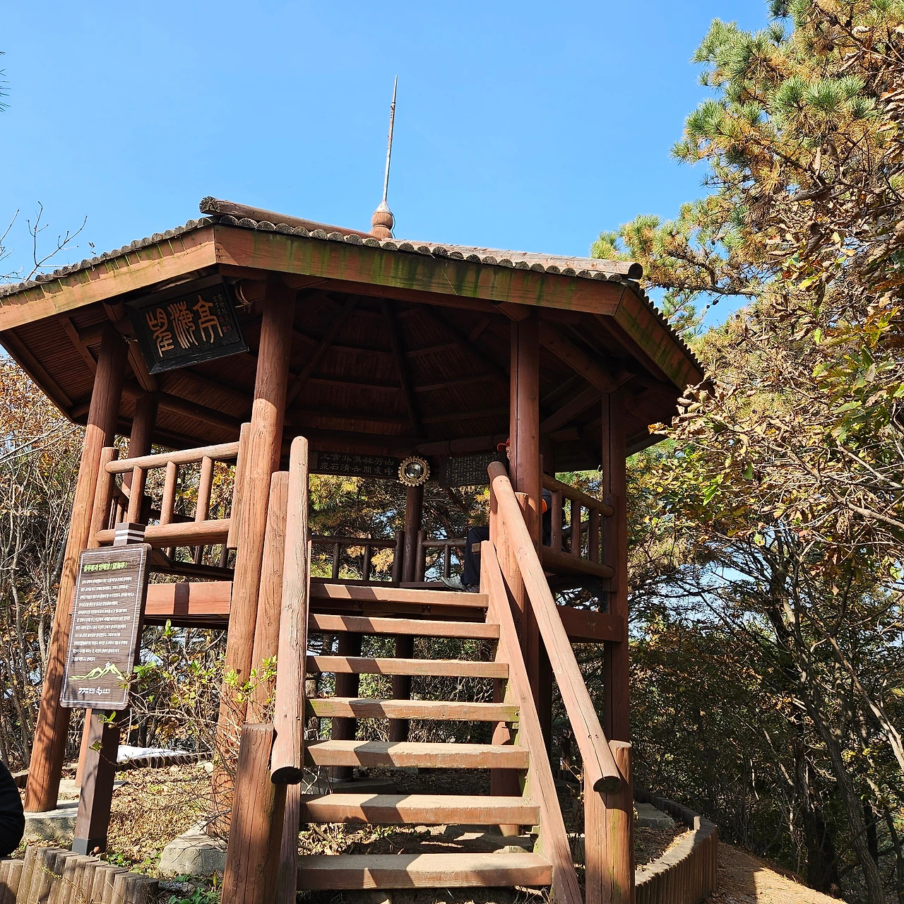 군부대를 우회하는 코스를 이용하여 하산로에 들어섰다. 그 길이 초반에는 가파르지만 너무나 평탄한 하산로다. 군부대의 보급을 위한 헬기장도 있다. 그 헬기장에서 군부대로 오르내릴 수 있도록 예전부터 있는 계단형 등산로가 있다. 정리가 잘되어 있다고 본다. 군부대 헬기장을 지나면 새로운 헬기장을 만난다. 헬기장에서 의왕으로 내려가는 길이 있고 그곳에 쉼터가 있어 너도 나도 쉬고 있다. 우리도 휴식을 취하면서 구경을 한다.