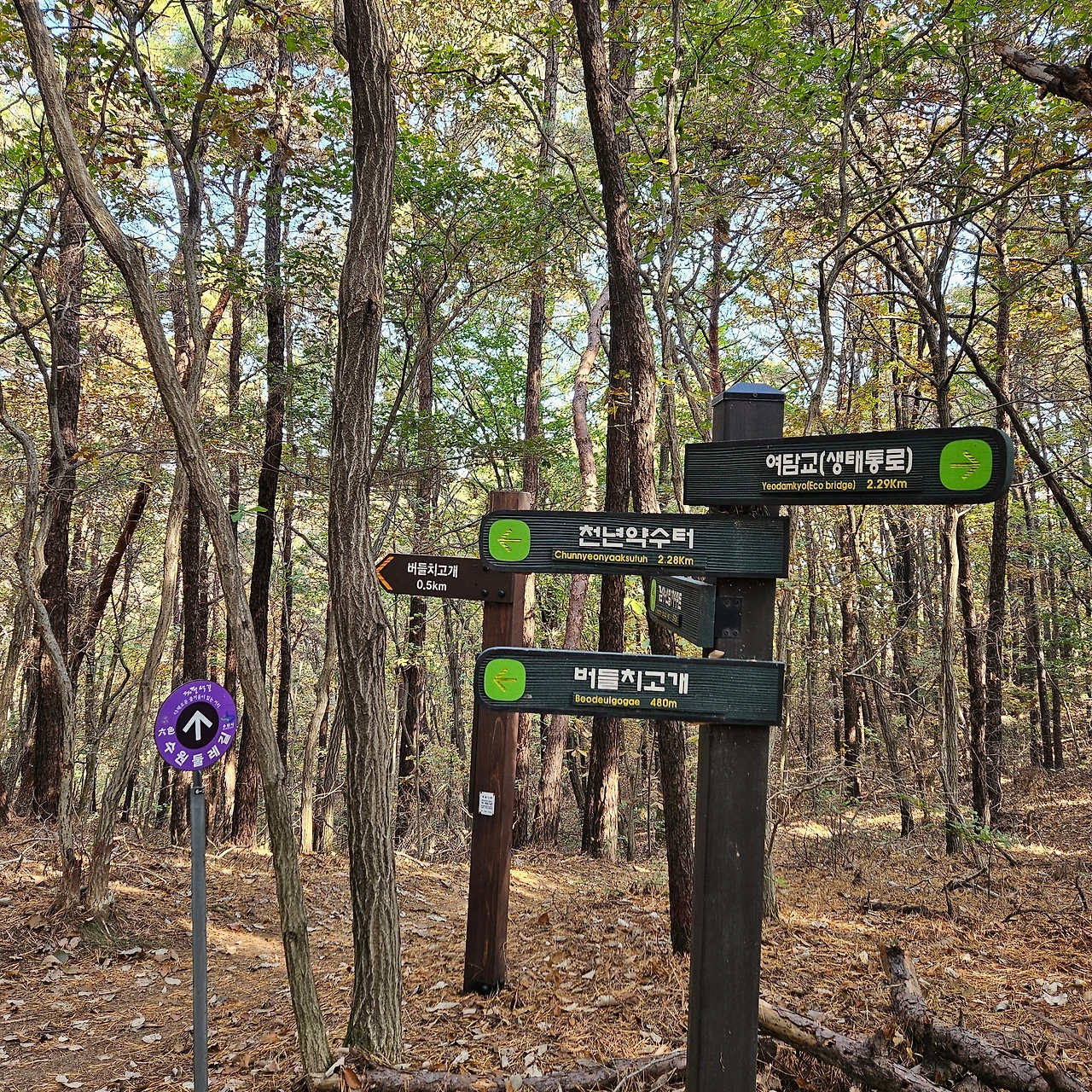 수원둘레길 안내표지가 있으며 그 길을 따라서 걸으면 된다. 길이 좋다고 보면 될 것이다. 영동고속도로 위를 지나면서 본격적인 둘레길 걷기가 시작된다고 보아야 할 것이다. 버들치고개까지는 둘레길이고 산책로이다. 군부대의 철조망을 경계삼아 걷는다. 고갯마루가 1번 있고 나머지는 편안한 길이라고 보아야 할 것이다. 어르신들이 수시로 보인다. 이분들이 이렇게 걸으면 좋다. 그것은 사회적 비용이 감소하기 때문이다. 오르락내리락 하지만, 급하게 해발고도를 100m도 끌어올리지 않고 오르락내리락하는 것이다.