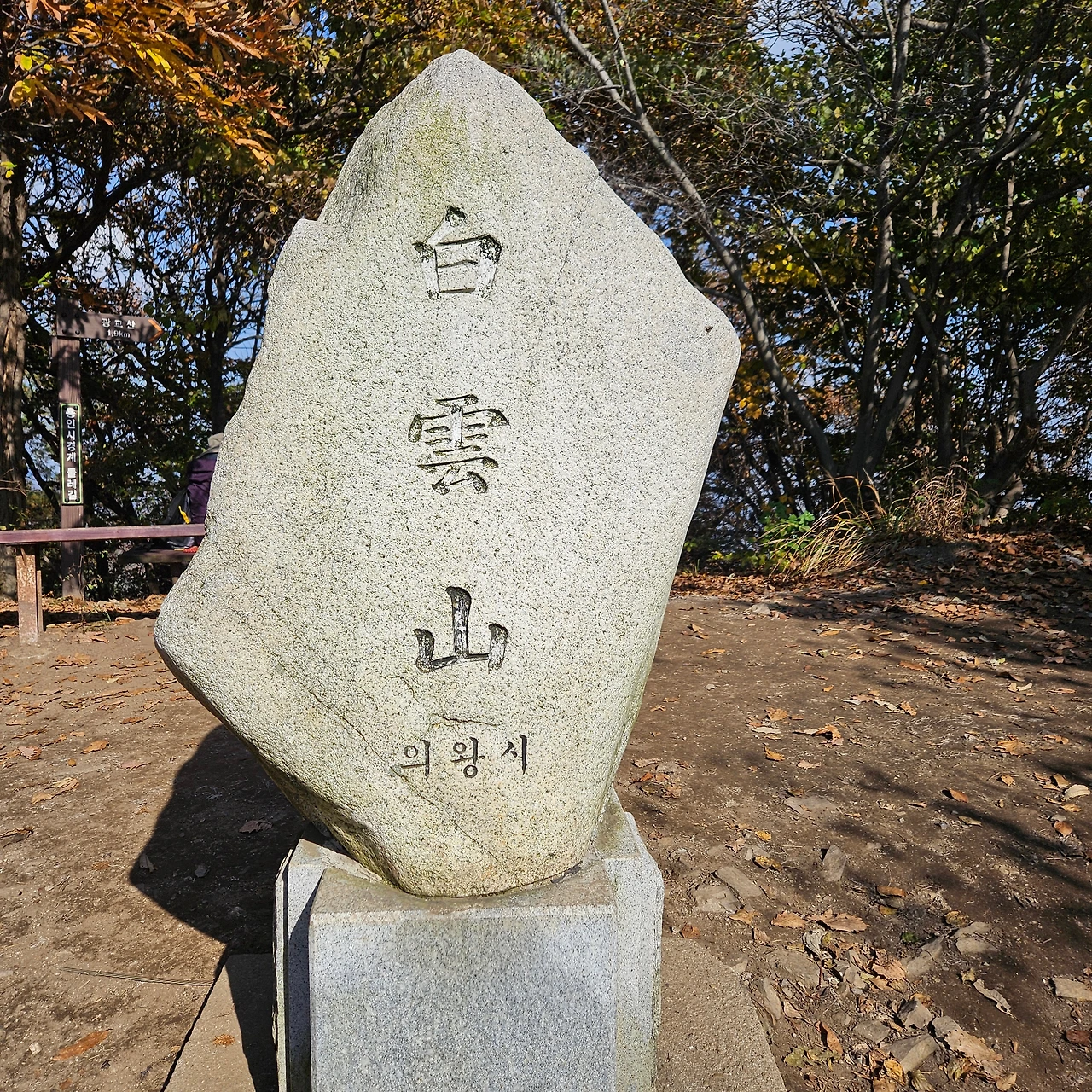 백운산이 바로 앞에 있다. 이번에는 군시설이다. 군시설을 회피하여 오른쪽, 왼쪽으로 이동한다. 백운산 정상으로 갈 경우에는 오른쪽으로 가고 정상을 가지 않고 지지대 고개 등으로 하산을 할 경우에는 왼쪽으로 간다. 우리는 백운산 정상을 갔다가 백운산 정상에서 오른쪽으로 나 있는 등산로를 이용하기로 하였다. 백운산 정상은 수원시가 아닌 의왕시이다. 이곳에서 등산로 안내는 의왕시를 기준으로 설명이 되어 있다. 지지대 고개로 내려가는 부분은 없고 의왕지맥 등이 정리되어 있다.