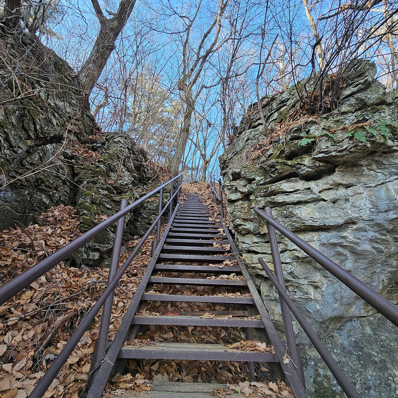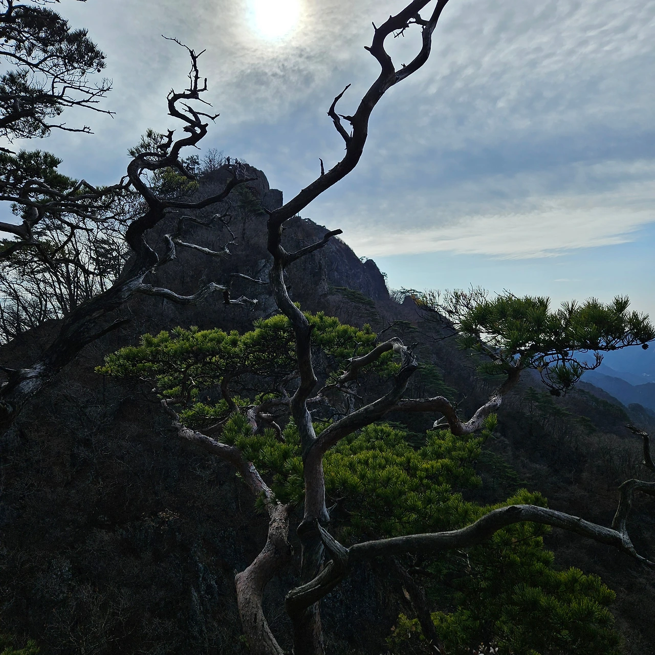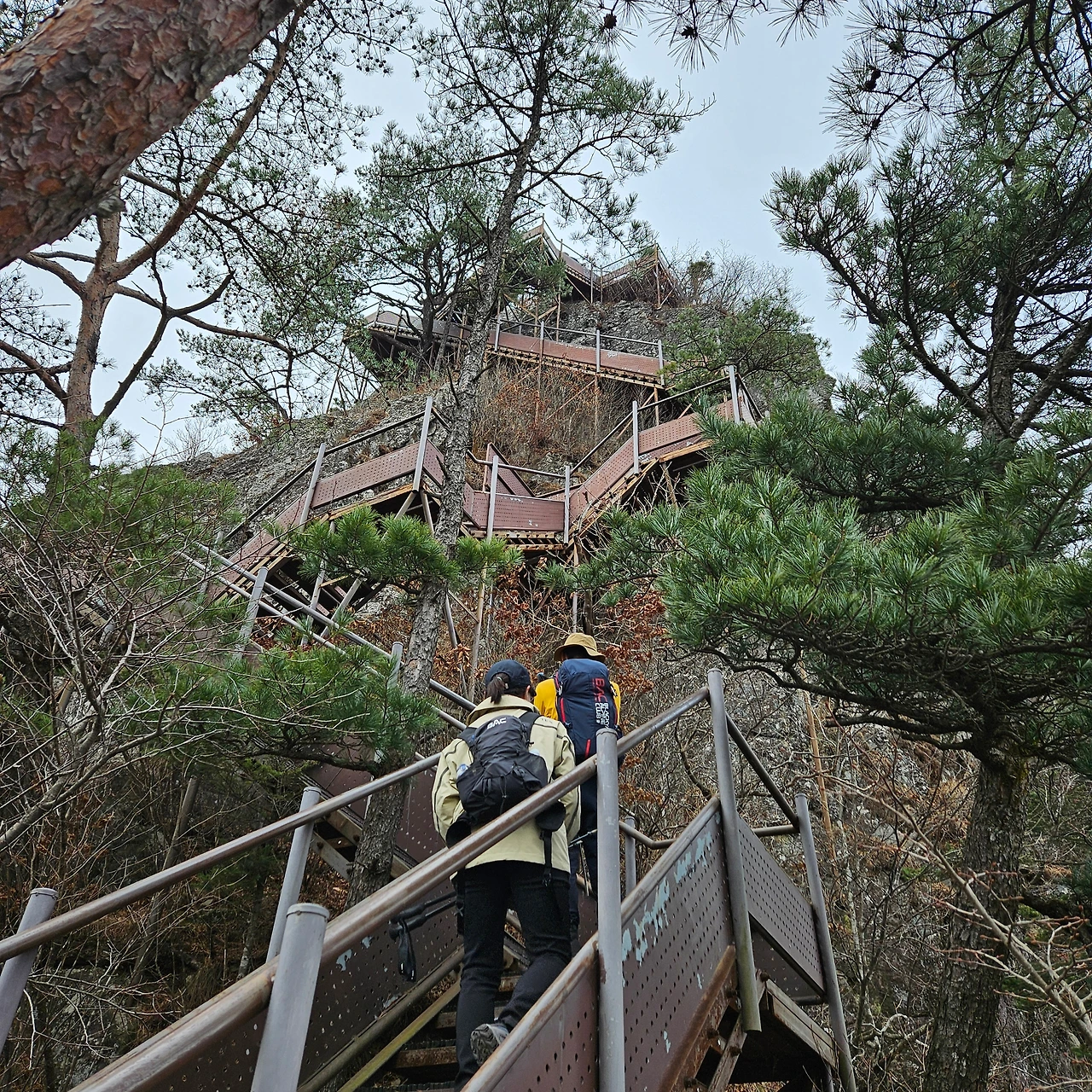 산을 올라오는 사람들이 많다. 대부분이 신륵사쪽에서 올라오고 있다. 내려가면서 데크를 보니 만개의 계단아 저절로 생각이 난다. 10층이상의 높이를 계단을 통해 오르면 영봉 정상이라고 올라오는 사람들이 물어보면 답변을 한다. 영봉 밑을 지나면서 돌이 떨어지는 것을 피하기 위하여 철망을 만들어 놓은 것을 보고 세심함에 감탄을 한다. 영봉아래를 지나면서 옛 등산로와 울타리가 훼손된 것을 보면 낙석의 위험을 알 수 있다. 영봉을 오르면서 아름답게 보았던 등산로에 들어섰다. 하산길이라서 더욱 아름답다고 해야 할 것이다. 영봉의 그 암릉이 보이는데 앙상항 나뭇사이로만 보일 뿐 사진으로 담을 수 없다. 송계로 내려가는 동창교 안내판이 있고 안전산행 쉼터가 있지만, 언제 물을 열지 모르게 잠겨 있다. 코로나 시절 사람들이 모이는 것을 없애기 위하여 닫아 둔 것 같은데 그것이 아직도 닫혀있다고 보아야 할 것이다. 이제는 겨울이다. 추위와 바람에서 쉬고 픈 등상객들을 위하여 문을 열어야 될 것 같다.